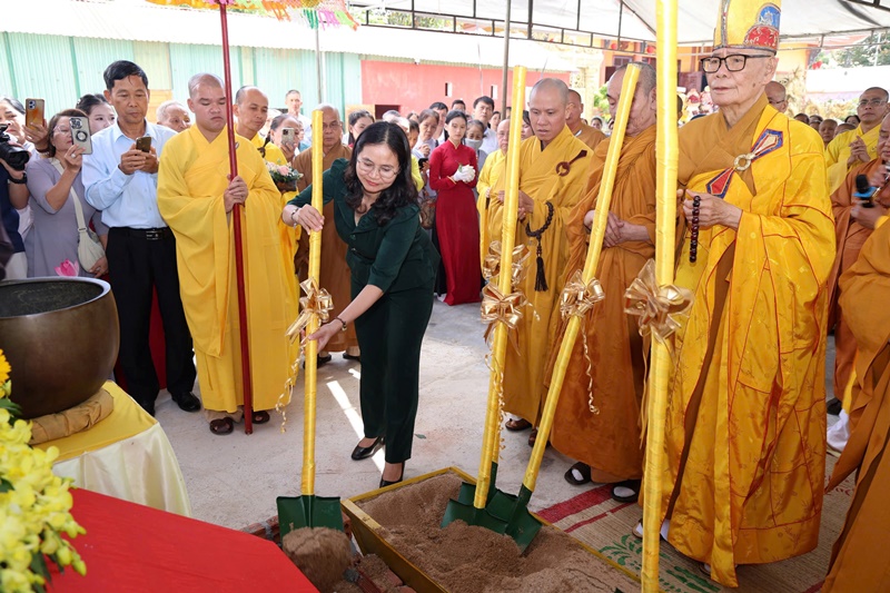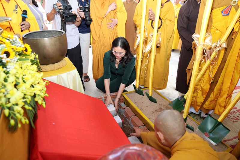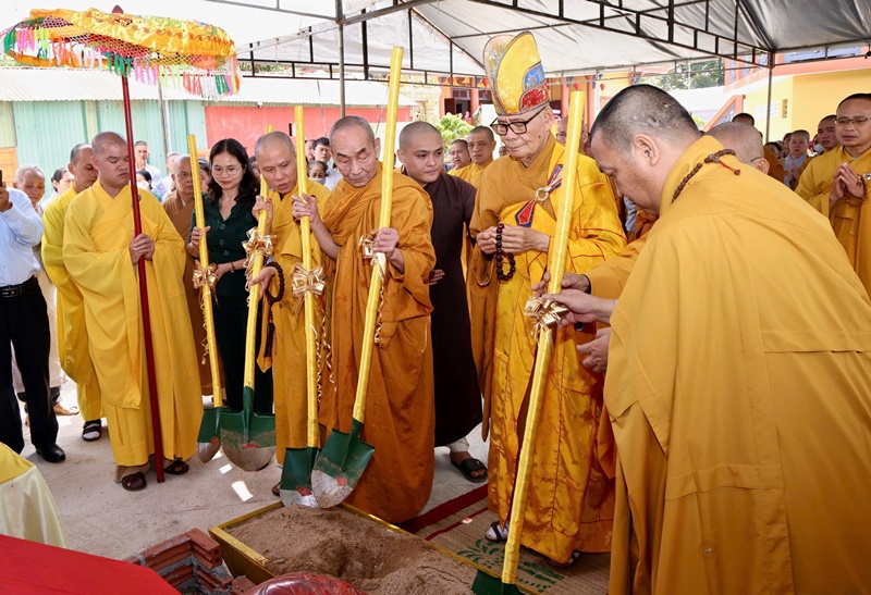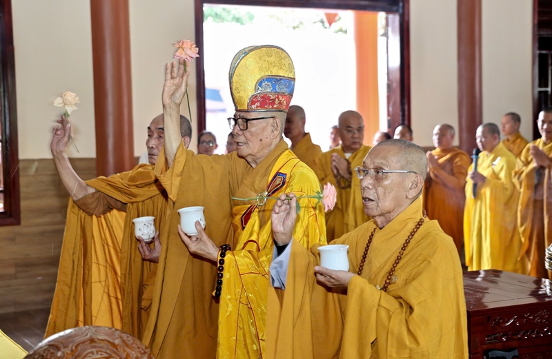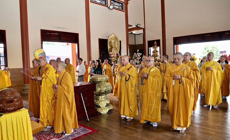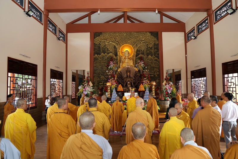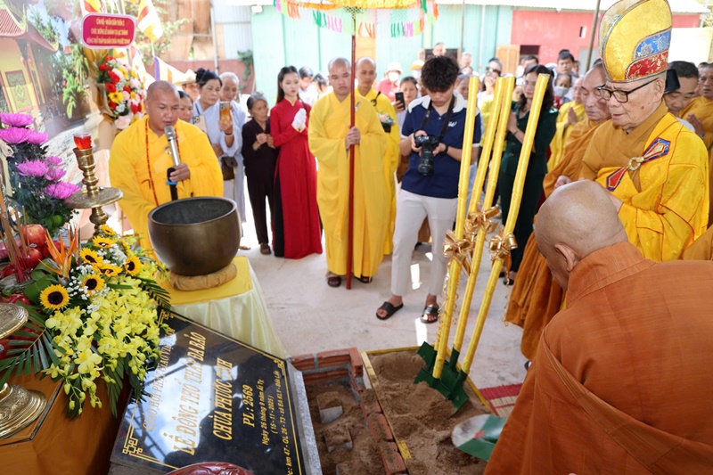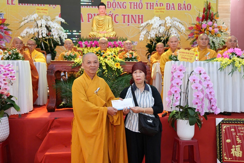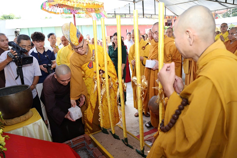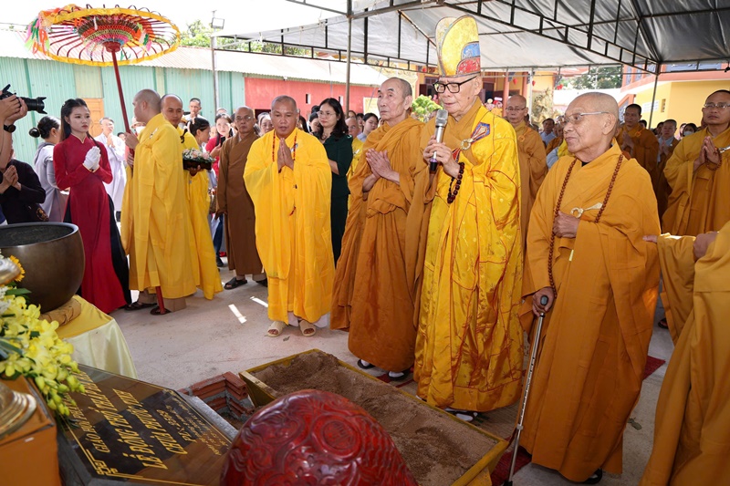 Ngay sau đó, chư Tôn đức quang lâm đàn tràng cử hành lễ chú nguyện và đặt đá xây dựng tháp Đa Bảo. Trong tiếng chuông trống Bát Nhã trầm hùng, lời kinh chú nguyện vang lên thanh tịnh, cầu nguyện công trình tháp được kiến lập viên thành, trở thành biểu trưng của trí tuệ và lòng kiên cố hộ trì Tam bảo.
