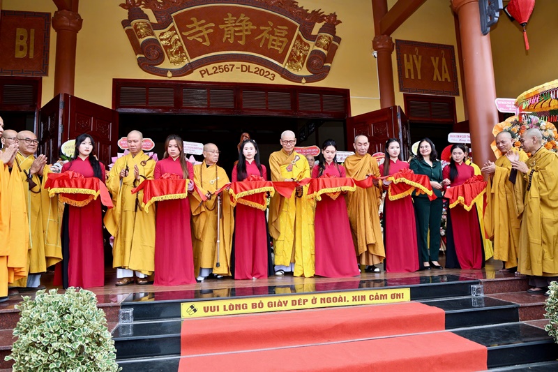 Trong niềm hoan hỷ vô biên của chư Tôn đức Tăng Ni, quý quan khách và toàn thể Phật tử, đại chúng trang nghiêm cử hành nghi thức cắt băng khánh thành Đại hùng bảo điện chùa Phước Tịnh. Dải lụa hồng được mở ra biểu trưng cho một chặng đường mới, đánh dấu sự hoàn mãn của công trình sau nhiều năm nỗ lực trùng tu, xây dựng.