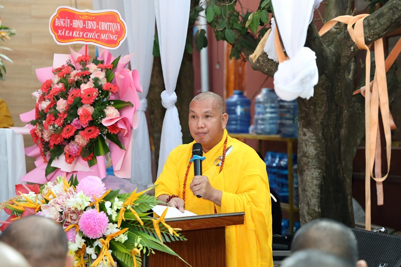 Đạo từ buổi lễ, Hòa thượng Thích Châu Quang tán thán công đức Thượng tọa Thích Trí Nghĩa cùng Phật tử đã vượt qua bao khó khăn để xây dựng, tôn tạo nên ngôi chùa Phước Tịnh như hôm nay, phát huy ánh sáng chánh pháp làm tốt đời đẹp đạo, trang nghiêm Giáo hội. Công đức hôm nay còn mãi đến muôn đời, công trình sẽ lưu lại cho thế hệ sau tiếp nối và phát triển. Từ nay bà con Phật tử xã Ea Kly có một ngôi phạm vũ huy hoàng để quay về nương tựa, lễ bái tu học.