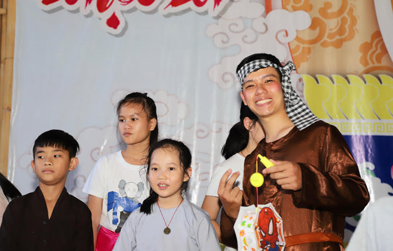 Theo sinh hoạt tu học mỗi tháng một lần, từ buổi sáng, gần 200 em thiếu nhi đã về chùa tham dự khóa tu 1 ngày dành cho thanh thiếu nhi. Từ 13h00, gần 800 em khác có giấy mời của BTC được cha mẹ đưa về chùa để tham dự lễ hội. Có gần 200 em nhỏ hiện diện không có giấy mời vẫn được thầy Trụ trì tặng quà.