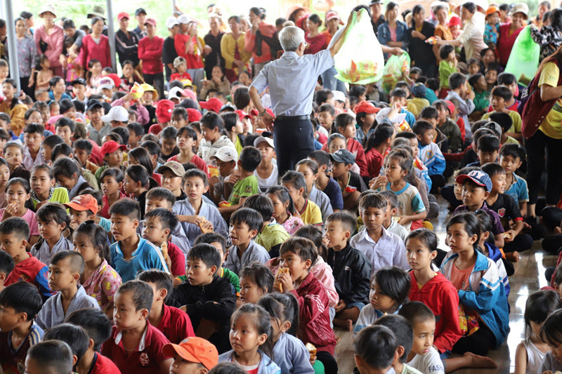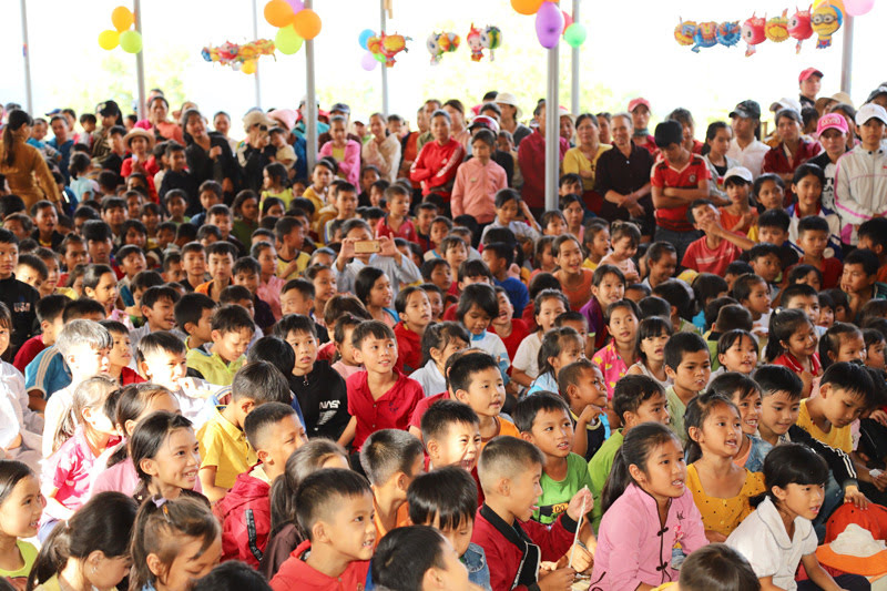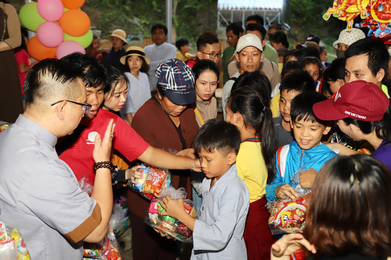 Được biết, do bão lũ thường xuyên nên chính quyền và nhân dân nơi đây phải lo vượt qua khó khăn trước mắt và chuẩn bị vào đầu năm học mới, không có điều kiện tổ chức Tết trung thu đoàn viên cho các cháu. Các phụ huynh bày tỏ sự xúc động và các em hân hoan ra về với những phần quà trong tay. Chúng tôi bùi ngùi khi thấy các em dò dẫm từng bước chân của bố mẹ đi bộ gần 3 km để về nhà, có em dắt chiếc xe đạp cũ không máng chắn bùn trên đường lầy lội dưới làn mưa nặng hạt và mỉm cười vẫy tay chào khi xe công nông chở đoàn người đi qua: “Chào quý sư thầy và các cô chú ở xa về sớm nhé, nhà cháu cách đây chỉ chưa đến 10 km thôi ạ”!