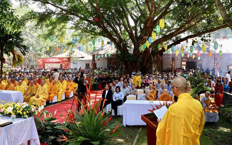 Ban Đạo từ cho buổi lễ, Hòa thượng Thích Châu Quang đã ân cần nhắn nhủ đại chúng về diệu âm tỉnh thức của tiếng chuông chùa qua lời thơ của Thiền sư Nhất Hạnh: “Nghe chuông chùa phiền não tan mây khói - Ý lặng thân an miệng mỉm cười”. Hòa thượng chứng minh đã nhấn mạnh và tán thán công đức “Xây chùa, dựng tượng, đúc chuông” là vô lượng vô biên, là việc làm hữu ích để “Phật nhật tăng huy - Pháp luân thường chuyển”.