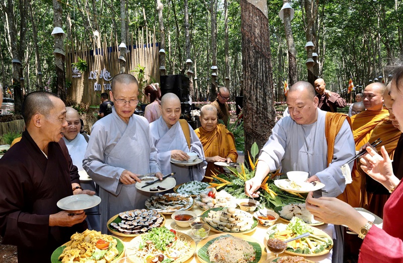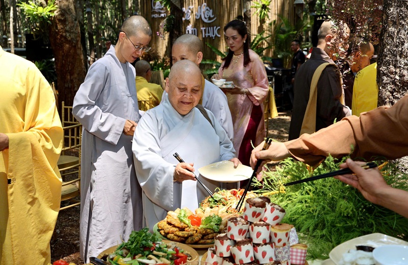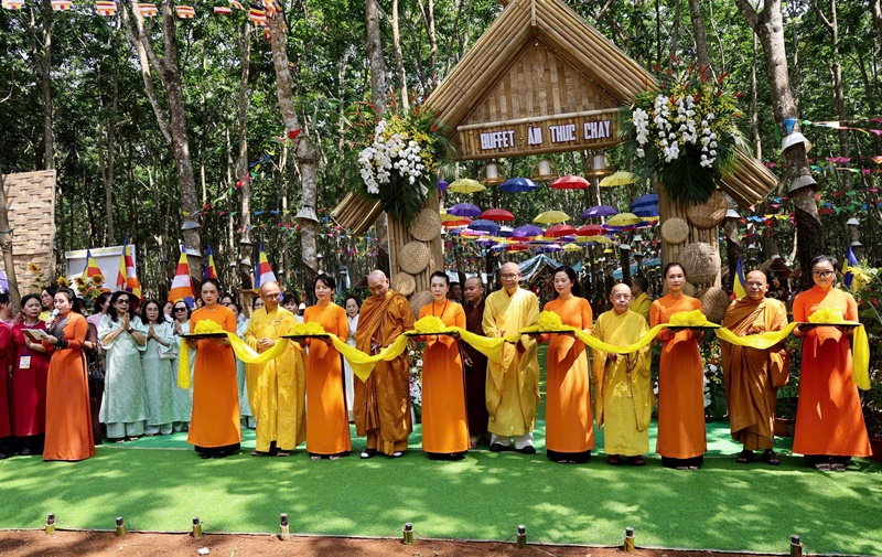 Thể theo chương trình buổi lễ, chư thiền tôn đức đã cắt băng khai mạc Lễ hội ẩm thực chay Pô Lăn. Không gian được thiết trí ấn tượng với hơn 65 món ăn hội tụ vẻ đẹp bất tận của ẩm thực chay …Đây cũng là dịp để Phật đường bày tỏ niềm tri ân trong muôn một đối với đạo tình chư tôn đức, quý Phật tử và thiện hữu tri thức gần xa luôn đồng hành với bổn tự trên con đường phụng sự nhân sinh - tốt đời đẹp đạo.