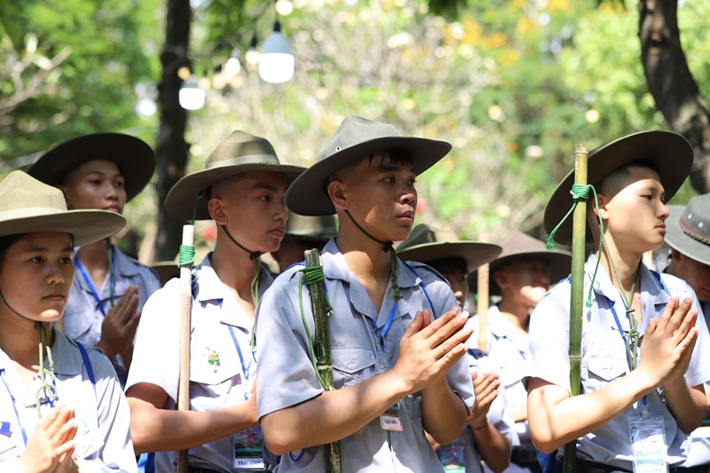 Đại diện Phân ban GĐPT Trung ương, Huynh trưởng cấp Dũng Tâm Giới – Phan Ngọc Thảo đã ghi nhận và tán thán công tác tổ chức của Phân ban GĐPT tỉnh; đồng thời nhắc lại ý nghĩa hành trình tìm cầu chân lý của Thái tử, qua đó sách tấn trại sinh tinh tấn tu học, rèn luyện tự thân.