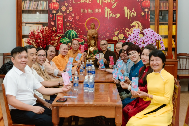 Nhân dịp đầu xuân mới, chư tôn đức gửi lời chúc mừng và trao tặng phong bao lì-xì mừng tuổi đến toàn thể thành viên hiện diện, cầu chúc một năm mới bình an, hạnh phúc, tinh tấn phụng sự cho công tác truyền thông của Giáo hội và Phật giáo tỉnh nhà đạt được nhiều thành tựu tốt đẹp, ngày càng lan tỏa tinh thần trí tuệ và từ bi của đạo Phật đến bà con nhân dân. Buổi gặp mặt thành công tốt đẹp, thể hiện tinh thần đoàn kết, hòa hợp và cầu thị của toàn thể thành viên Ban.