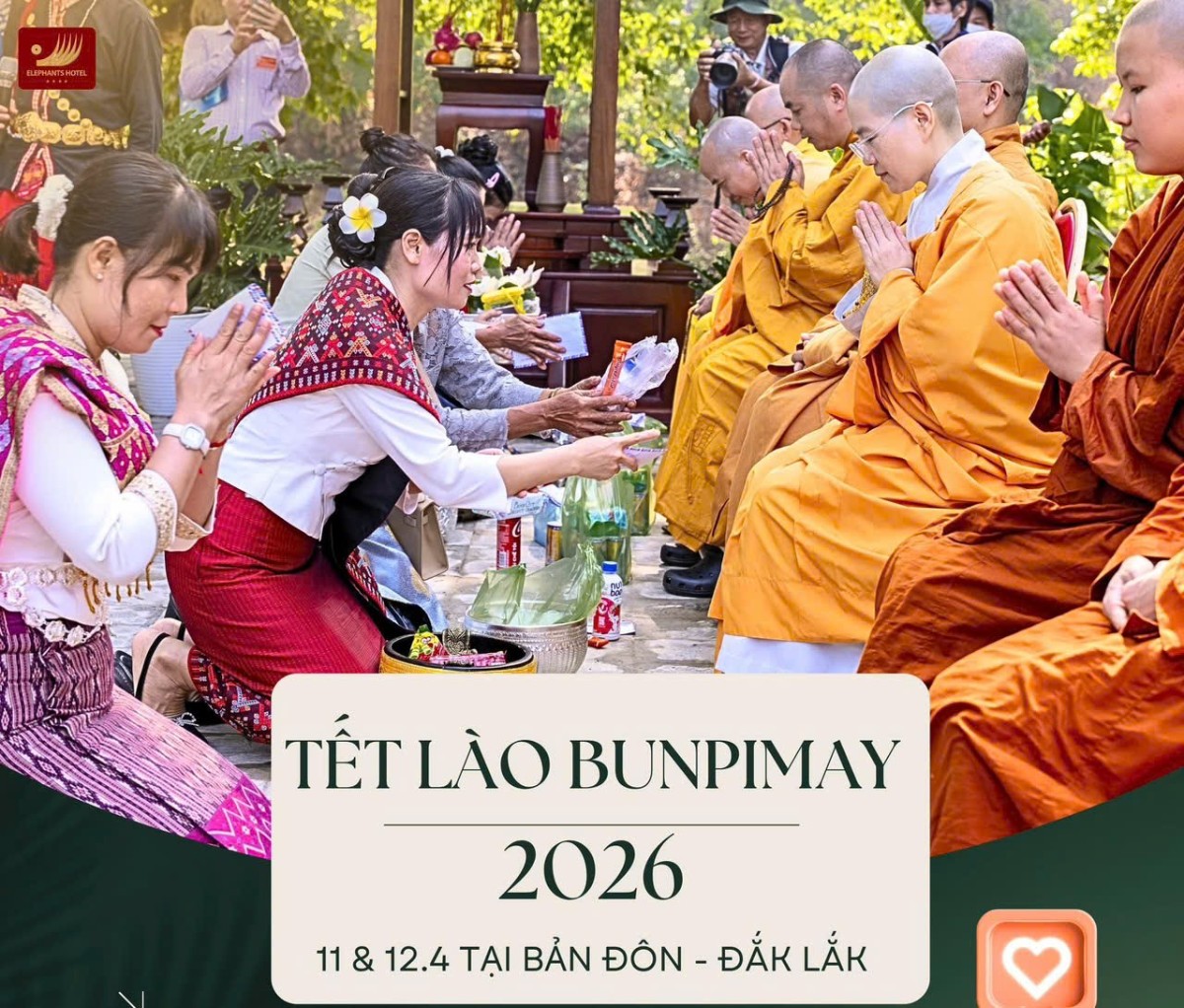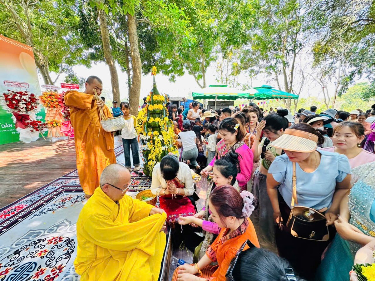 Sáng ngày 12/4/2026, trong không khí hân hoan và đậm đà bản sắc văn hóa truyền thống, lễ hội Bunpimay – Tết cổ truyền của nhân dân Lào – đã được long trọng tổ chức tại Trung tâm Cầu Treo, huyện Buôn Đôn, tỉnh Đắk Lắk. Đây là sự kiện văn hóa mang ý nghĩa đặc biệt, không chỉ thể hiện tinh thần giao lưu, đoàn kết giữa các dân tộc anh em mà còn góp phần bảo tồn và phát huy những giá trị văn hóa truyền thống trong đời sống đương đại.Đáp lại lời thỉnh mời trang trọng của Ban Tổ chức, phái đoàn Ban Văn hóa Trung ương Giáo hội Phật giáo Việt Nam đã quang lâm chứng minh và tham dự lễ hội. Trưởng đoàn là Thượng tọa Thích Hải Định – Ủy viên Thường trực Phân ban Di sản, Phó Trưởng Phân ban Sáng tác Văn học – Nghệ thuật Ban Văn hóa Trung ương. Tháp tùng đoàn còn có Đại đức Thích Minh Giáo – Ủy viên Ban Văn hóa Trung ương, Trưởng Ban Văn hóa tỉnh Đắk Lắk; Đại đức Thích Tâm Định (chùa Phổ Quang); Đại đức Thích Đức Thiện (chùa Phước Đức, Đắk Nông); Đại đức Thích Tịnh Quang – Ủy viên Văn phòng Ban Văn hóa Trung ương; cùng Sư cô Thích Nữ Liên Thảo – Ủy viên Thường trực Ban Văn hóa Trung ương, Ủy viên Thường trực Phân ban Di sản, và đông đảo chư Tôn đức Tăng Ni, Phật tử đồng tham dự.