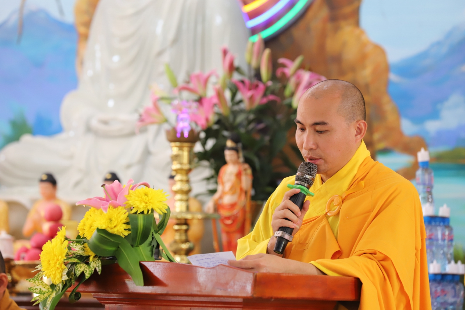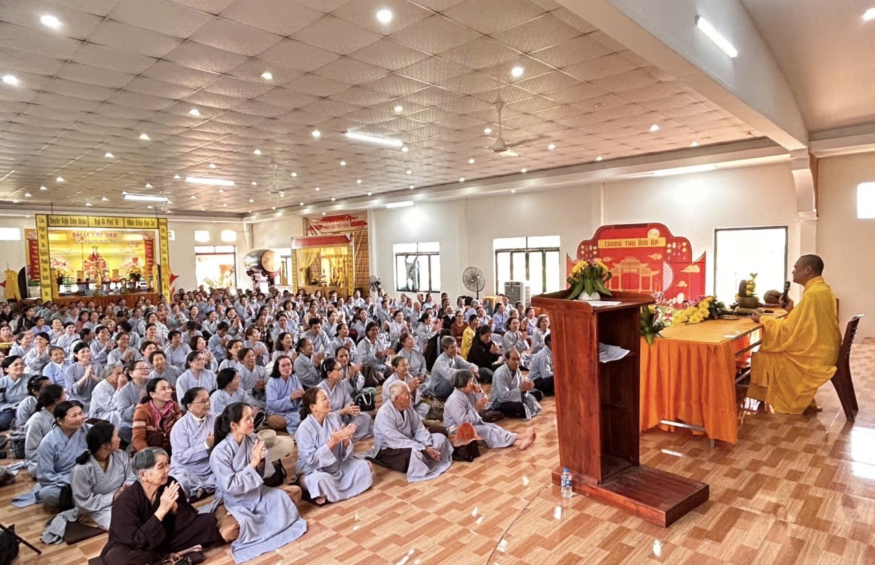Ban đạo từ tại buổi lễ, Thượng tọa Thích Quảng Huy nhấn mạnh ngày kỷ niệm Đức Phật Thích Ca Mâu Ni thành đạo là lời nhắc nhở người con Phật quay về sống đời tỉnh thức; khuyến tấn Phật tử thực tập chánh niệm để đánh thức Phật tánh sẵn có nơi mỗi người, bởi sự tỉnh thức chính là nền tảng của an lạc và chuyển hóa khổ đau.