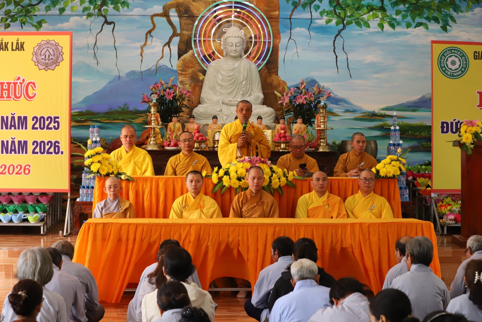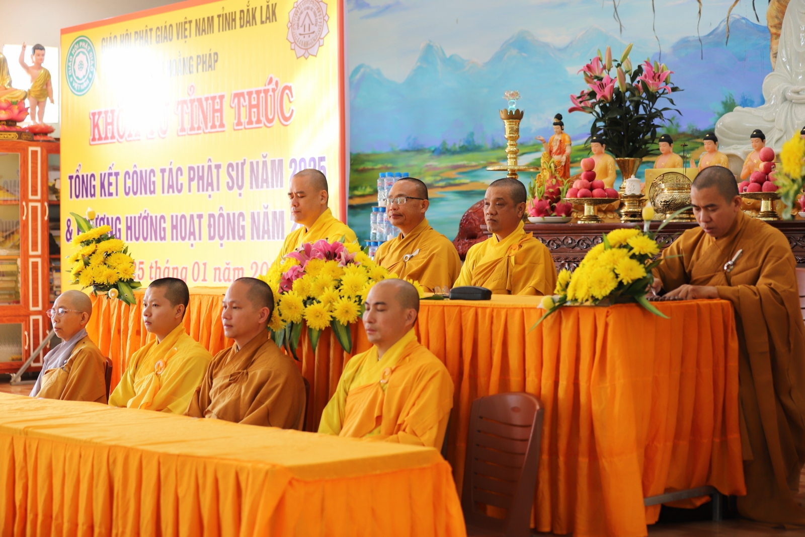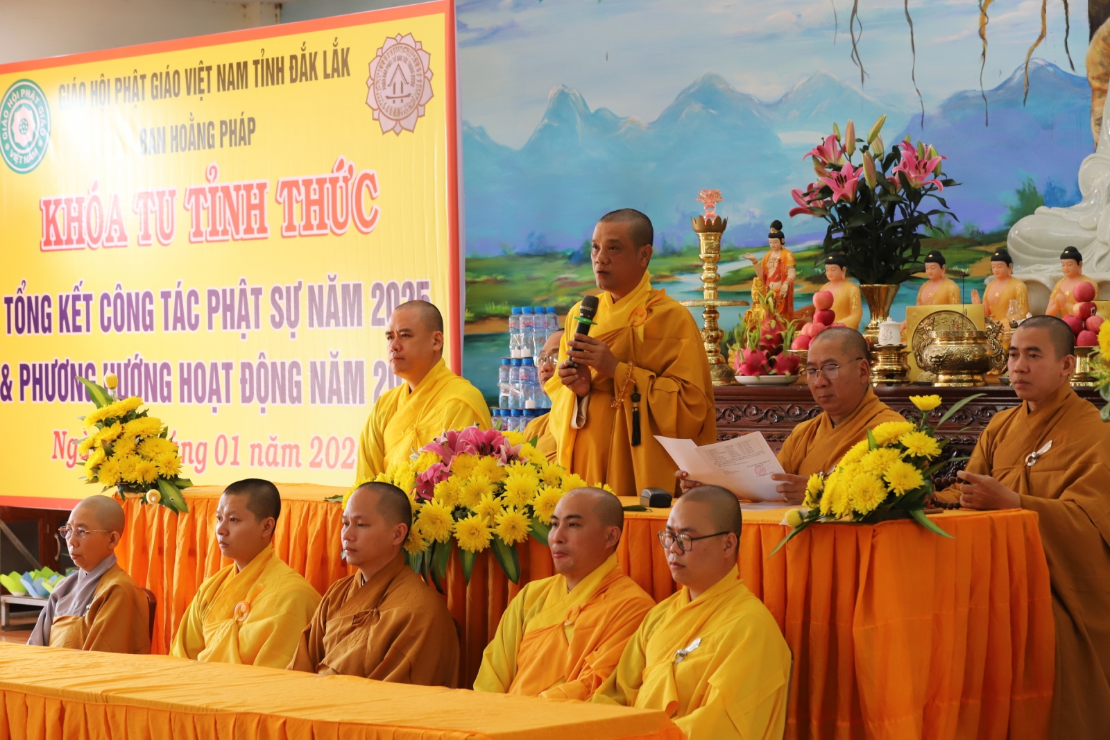 Đại đức Thích Quảng Hội - Phó Trưởng ban Hoằng pháp tỉnh đã trình bày báo cáo tổng kết công tác Phật sự năm 2025. Theo đó, Ban Hoằng pháp GHPGVN tỉnh Đắk Lắk đã nỗ lực ổn định tổ chức, duy trì mạch nguồn hoằng pháp và tổ chức đều đặn các hoạt động tu học, thuyết giảng, khóa tu. Bước sang năm 2026, Ban Hoằng pháp xác định tiếp tục phát huy tinh thần hòa hợp, đổi mới phương thức hoằng pháp, đưa giáo lý Phật đà thấm sâu vào đời sống, đặc biệt trong đồng bào dân tộc thiểu số, góp phần phụng sự Đạo pháp và Dân tộc.