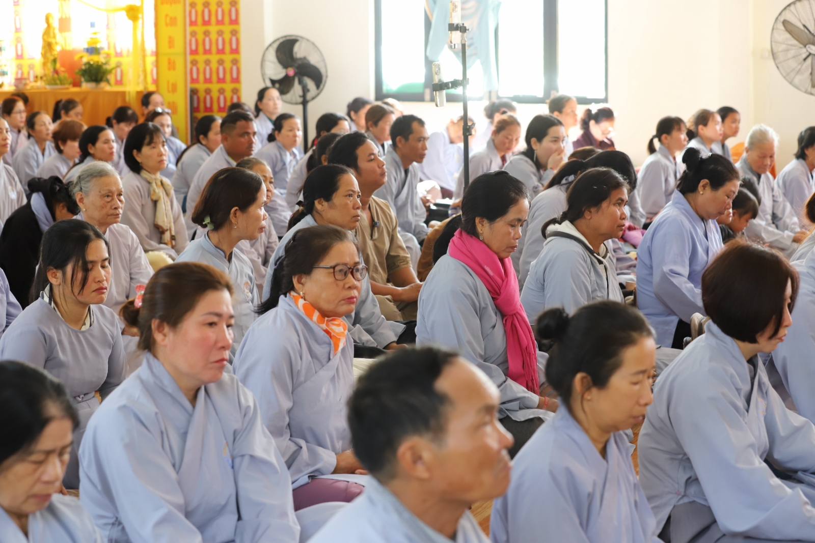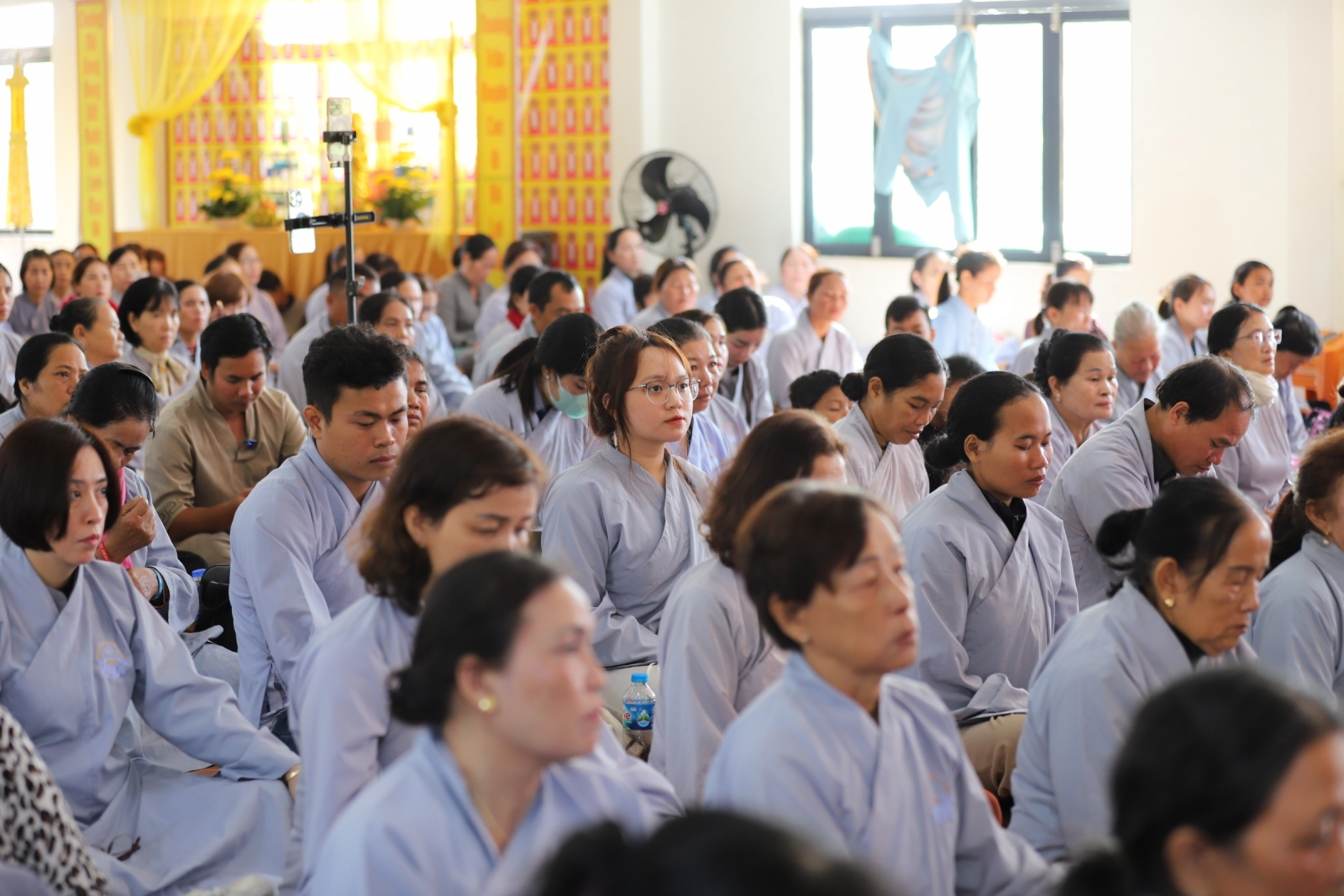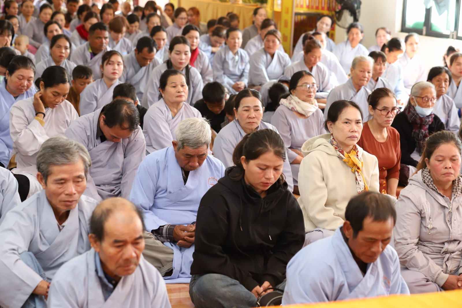 Trong suốt một ngày tu tập, chư Tôn đức đã hướng dẫn Phật tử thực hành các thời khóa như tụng kinh, lễ kỷ niệm Đức Phật Thích Ca thành đạo, niệm Phật, tọa thiền, thiền hành, quá đường trong chánh niệm và lắng nghe pháp thoại do Đại đức Thích Hải Nguyện chia sẻ. Các thời khóa được sắp xếp hài hòa, giúp đại chúng quay về nội tâm, buông xả lo toan và nuôi dưỡng sự an tịnh, tỉnh thức trong từng sinh hoạt.