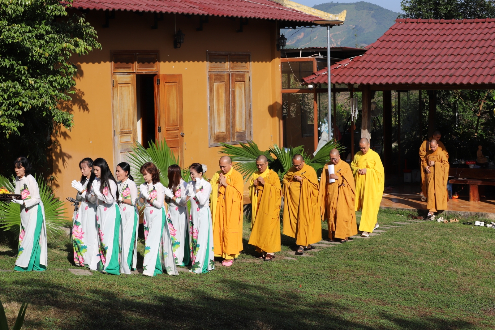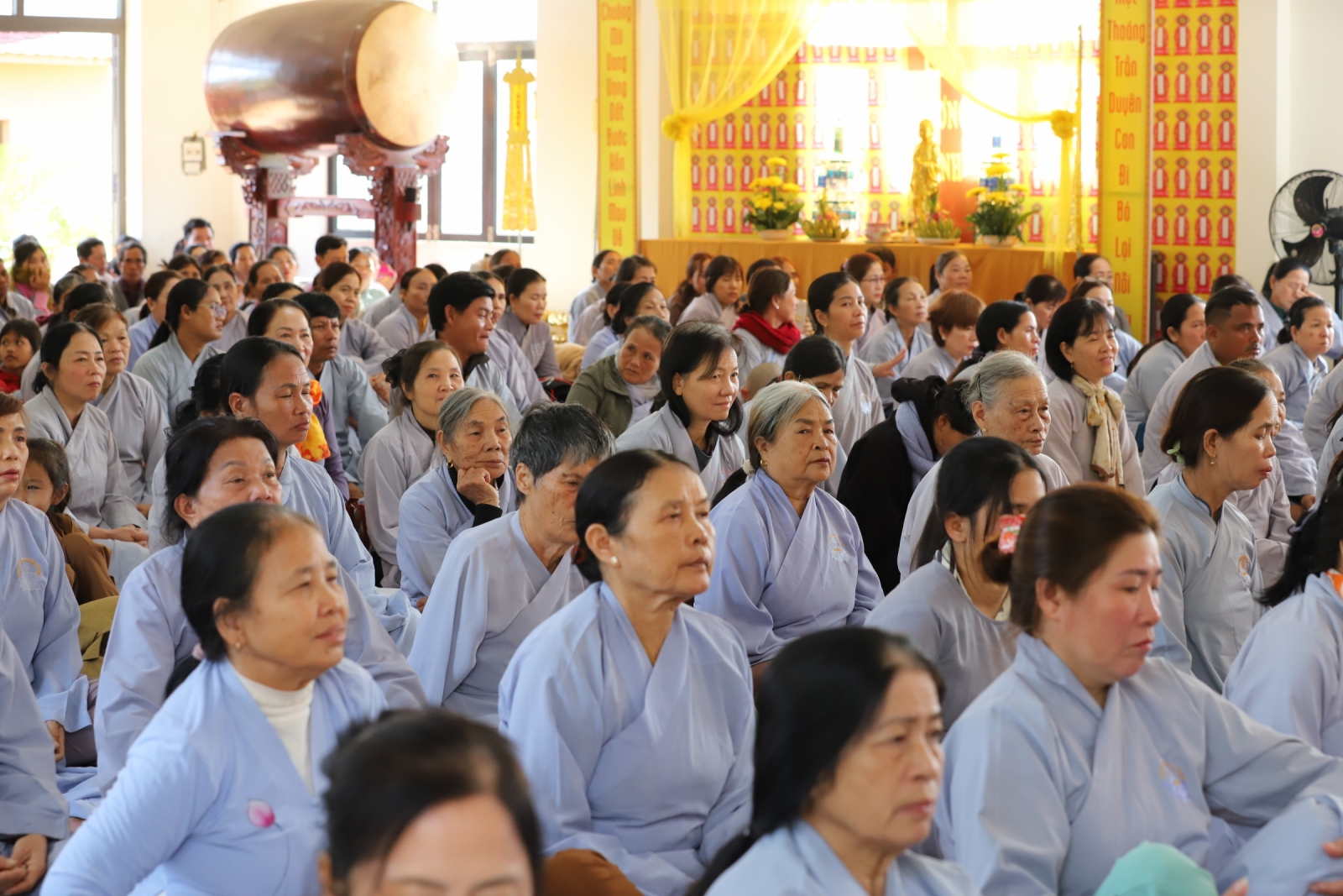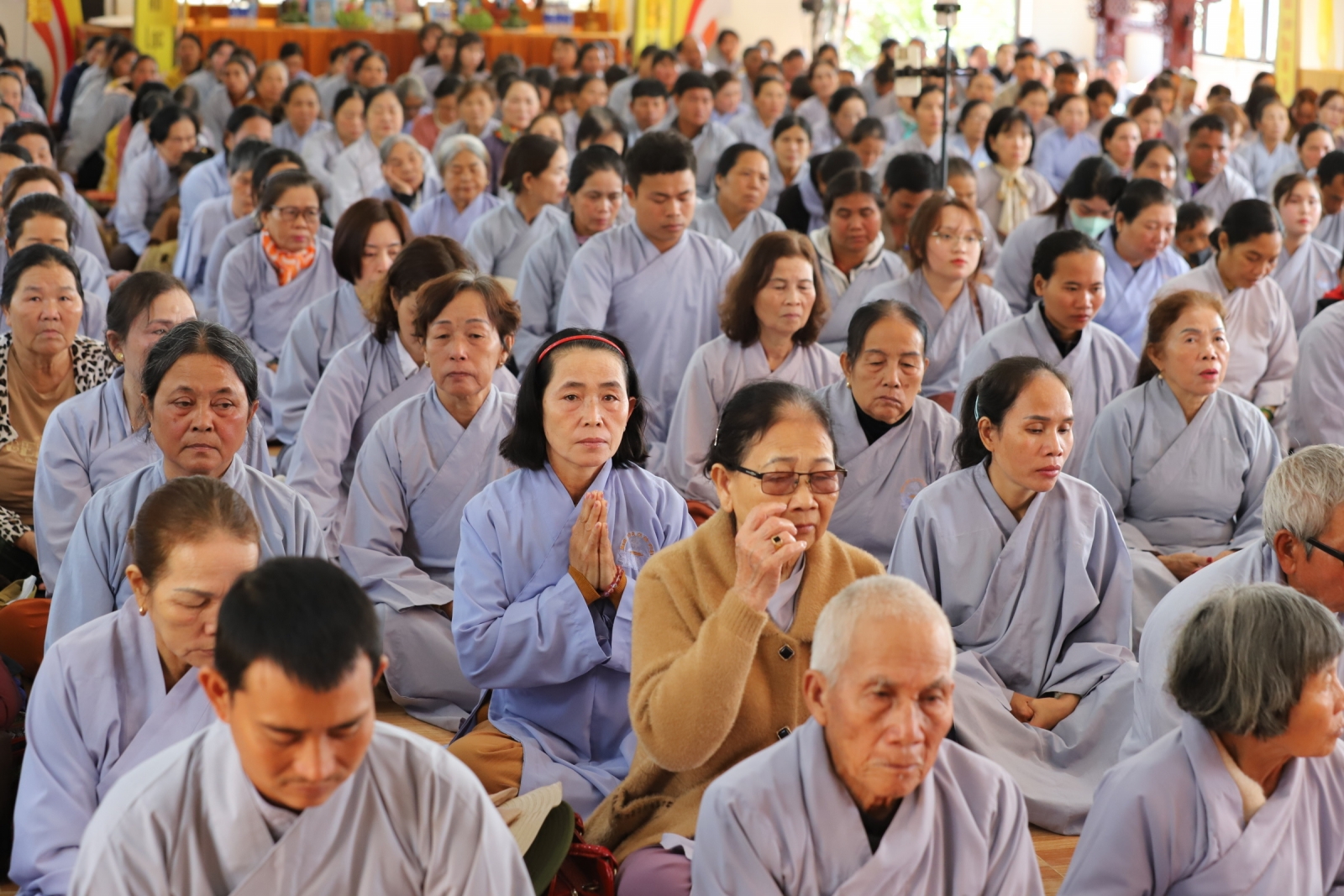 Trong suốt một ngày tu tập, chư Tôn đức đã hướng dẫn Phật tử thực hành các thời khóa như tụng kinh, lễ kỷ niệm Đức Phật Thích Ca thành đạo, niệm Phật, tọa thiền, thiền hành, quá đường trong chánh niệm và lắng nghe pháp thoại do Đại đức Thích Hải Nguyện chia sẻ. Các thời khóa được sắp xếp hài hòa, giúp đại chúng quay về nội tâm, buông xả lo toan và nuôi dưỡng sự an tịnh, tỉnh thức trong từng sinh hoạt.