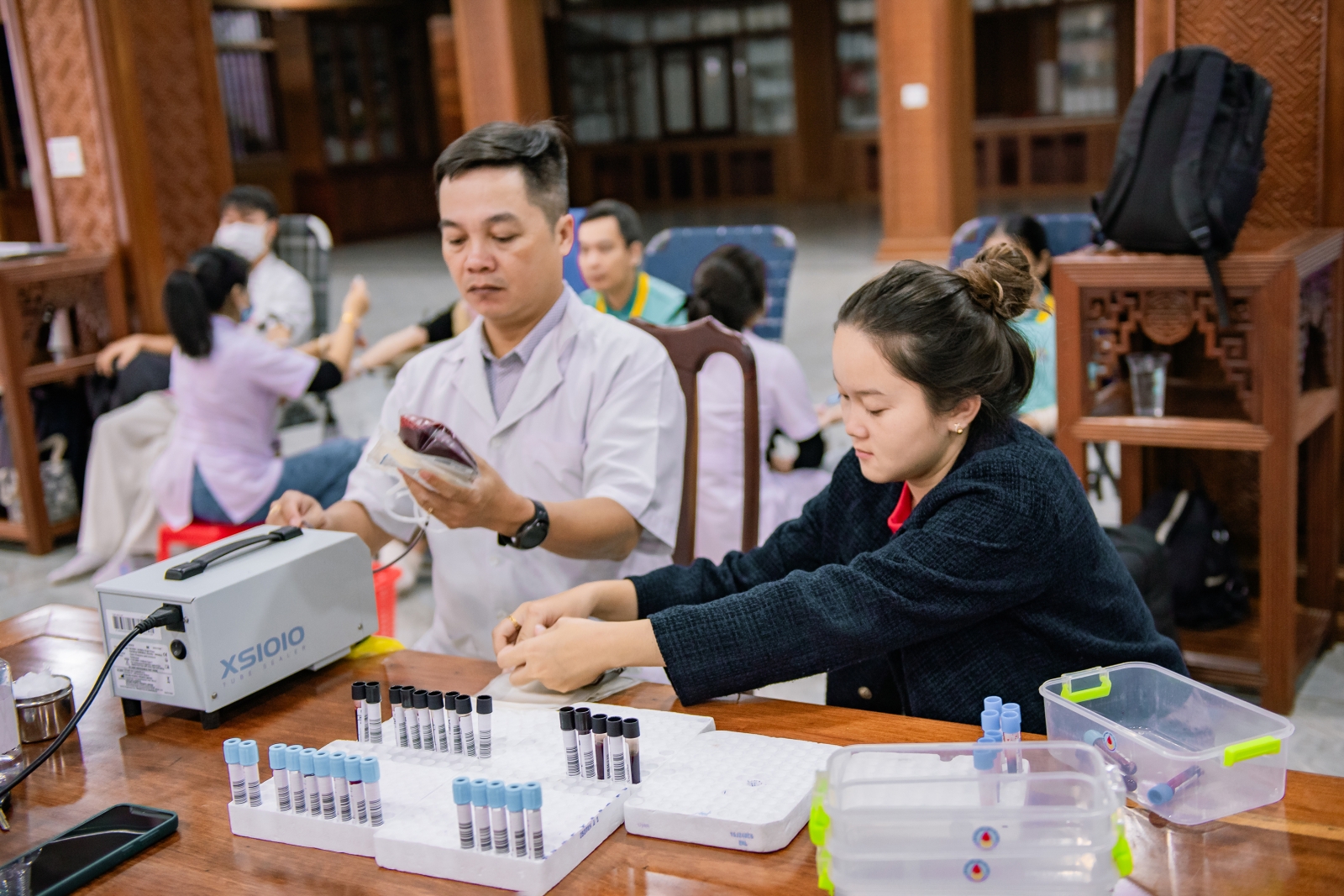 Tại buổi hiến máu, các bác sĩ, nhân viên khoa Xét nghiệm – Bệnh viện Đa khoa vùng Tây Nguyên cùng sự hỗ trợ của đội ngũ tình nguyện viên với tinh thần trách nhiệm, nhiệt tâm đã tận tình hướng dẫn phiếu đăng kí tham gia hiến máu, khám và tư vấn sức khỏe, tra cứu thông tin, xét nghiệm trước khi hiến máu…