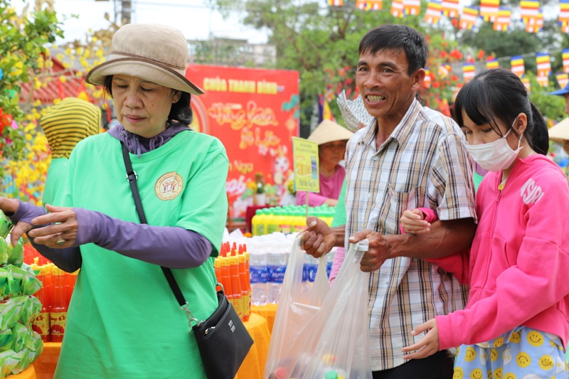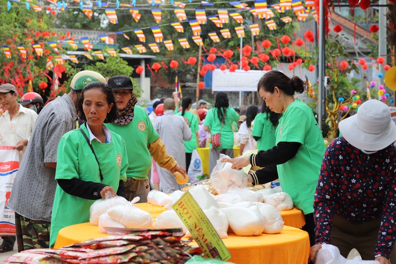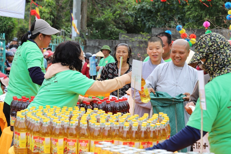 Tại chương trình, Ban Tổ chức đã phát 300 phiếu cho các hộ dân có hoàn cảnh đặc biệt khó khăn. Bà con trực tiếp lựa chọn 20 mặt hàng nhu yếu phẩm như gạo, mì, nếp, đường, nước tương, đậu xanh, nước ngọt, bánh mứt… phục vụ nhu cầu đón Tết. Mỗi suất quà trị giá 1 triệu đồng. Tổng kinh phí thực hiện chương trình là 300 triệu đồng, do chư Ni và các Mạnh Thường quân phát tâm ủng hộ.