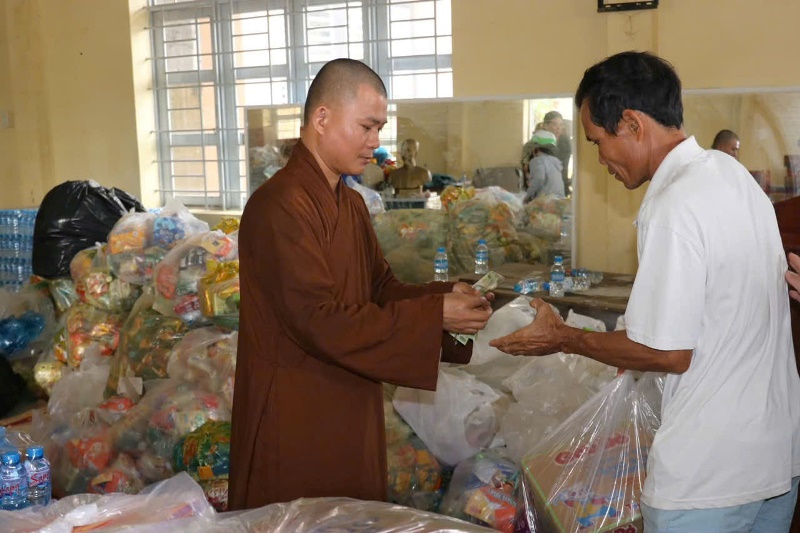 Trong hai ngày 22 và 23/11/2025, dưới sự hướng dẫn của Đại đức Thích Minh Giáo – Trưởng Ban Văn hóa GHPGVN tỉnh Đắk Lắk, trụ trì chùa Quán Thế Âm, xã Eakar – cùng chư Tăng, Ni đã khẩn trương triển khai hỗ trợ bà con vùng lũ tại các địa phương: Phú Thạnh (phường Tuy Hòa), xã Xuân Cảnh (sông Cầu cũ), thôn Mỹ Xuân 1, thôn Phú Hữu, xã Hòa Thịnh, tỉnh Đắk Lắk. Các phần quà bao gồm các nhu yếu phẩm với tổng trị giá 150 triệu đồng.