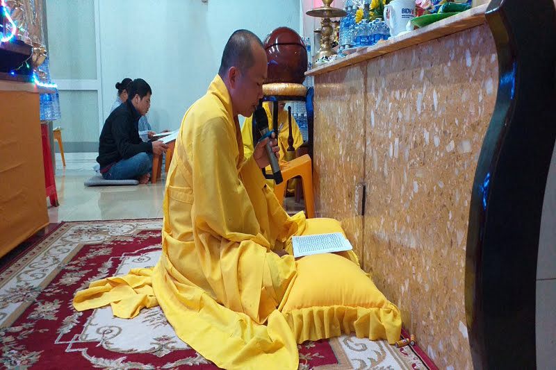 Buổi lễ do Đại đức Thích Đạo Thông trụ xứ, dâng hương khai kinh trai đàn Dược Sư, cầu an đầu xuân Kỷ Hợi 2019 cho các gia đình Phật tử, cũng như toàn thể đạo tràng thiện nam, tín nữ nay cho những ai có đầy đủ nhân duyên đồng lòng nhất tâm cầu nguyện quốc thái dân an, mưa thuận gió hòa, muôn dân trăm họ ấm no an lạc, thật lành thay cho những người trước đây chưa biết gì Phật pháp, hằng ngày ngoài công việc đồng áng, các thú vui xem phim, Cà phê, hay hát hò, nhậu nhẹt, của bà con nơi đây. nhưng từ khi có Niệm Phật Đường Liên Trì và Thầy trụ xứ về hướng dẫn tu học Phật Pháp, biết nhân quả có thật ko sai, nên các Phật tử quay về quy y Tam Bảo tụng Kinh, sám hối, càng ngày bà con Phật tử về sinh hoạt tu học đông đảo hơn.