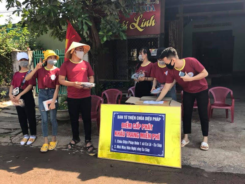 Niệm Phật Đường DIệu Pháp thôn 1 xã Ea Lê, huyện Easup, đã phát động phật tử may khẩu trang vải từ thiện để tặng miễn phí cho bà con nhân tại địa phương. Chung tay cùng chính quyền địa phương, cộng đồng phòng chống sự lây nhiễm và quyết tâm đẩy lùi Covid 19 tại Việt Nam.