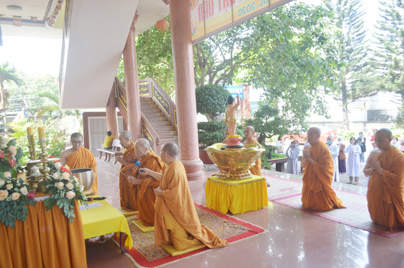 Buổi lễ bắt đầu với phần niêm hương, bạch Phật của Hoà thượng Chứng minh, chư Tôn đức Tăng Ni và quý Phật tử cùng nhau tụng bài kinh Khánh đản. Sau đó, chư Tôn Giáo phẩm lần lượt thực hiện nghi thức tắm Phật, cầu nguyện thế giới an bình, dịch bệnh tiêu trừ, cầu nguyện cho Phật Pháp được trường tồn, Phật tử giữ vững lòng tin nơi Tam Bảo và hộ trì đắc lực cho Giáo hội để GHPGVN ngày càng vững mạnh.