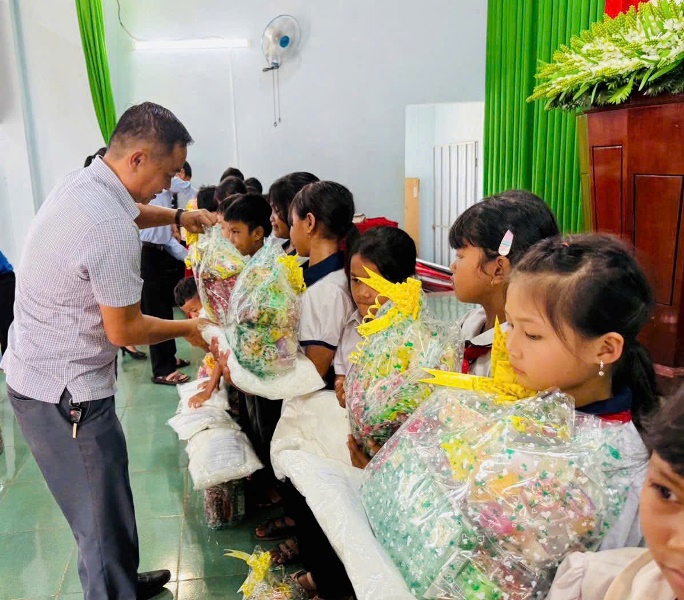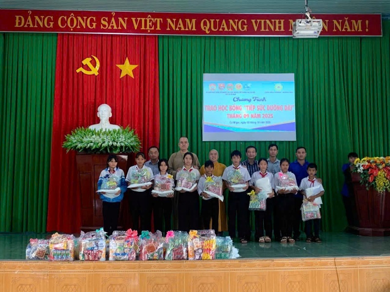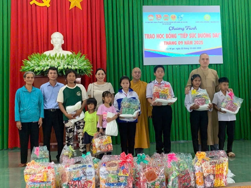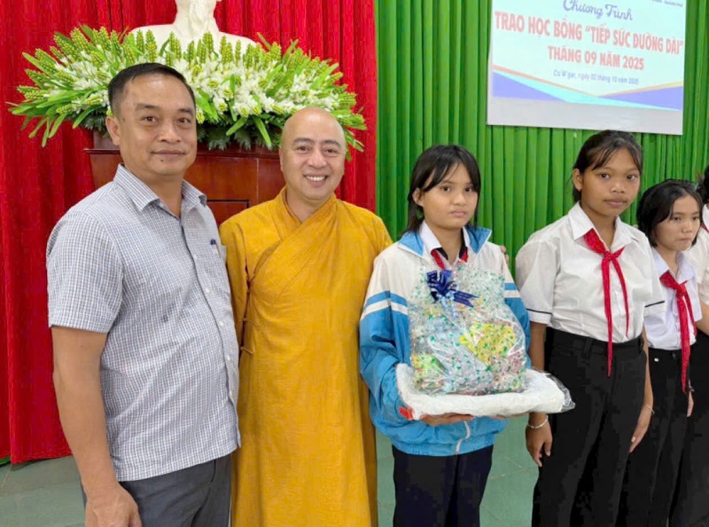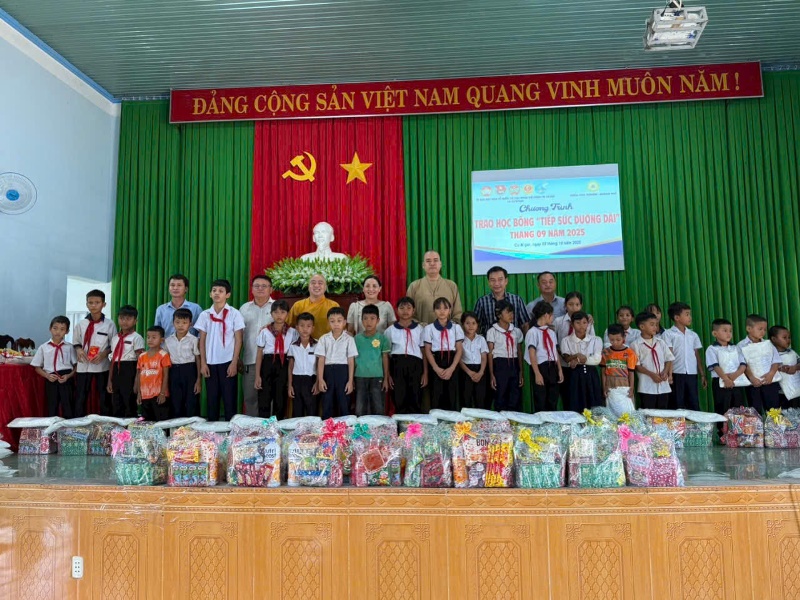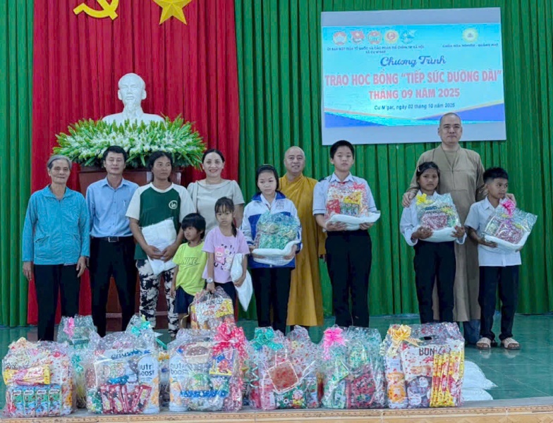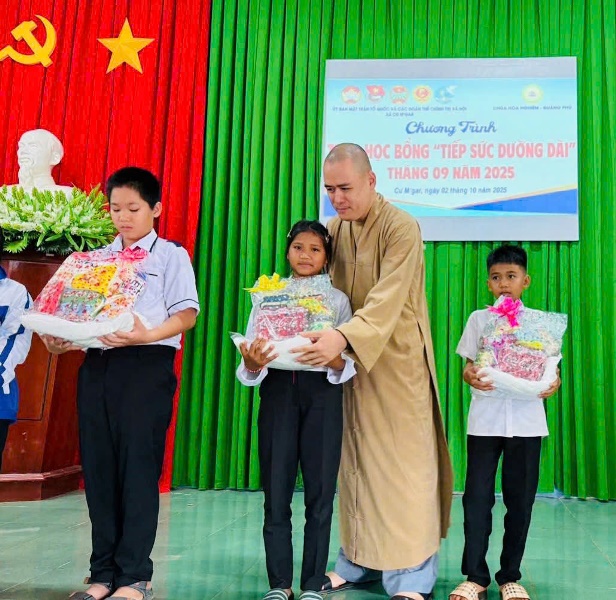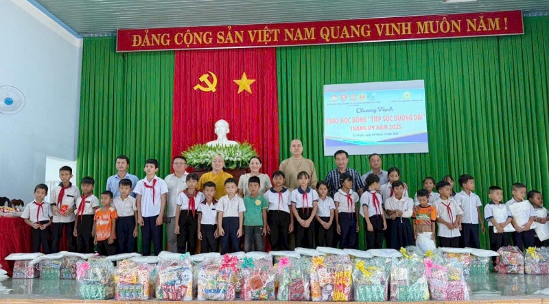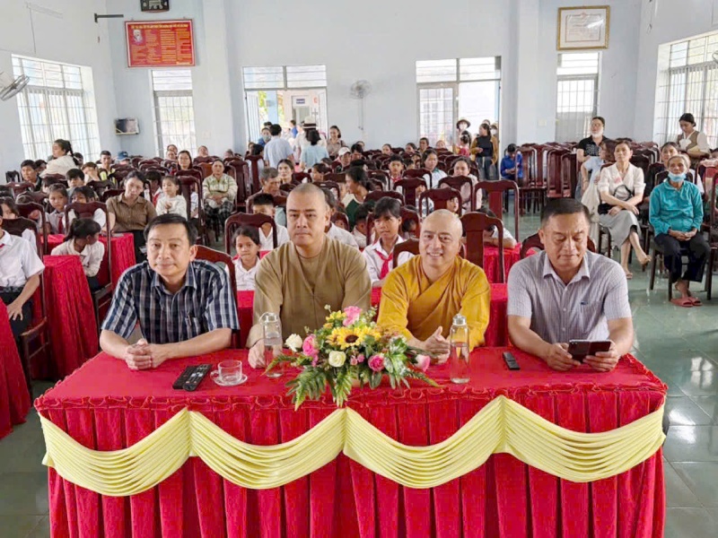 Với tinh thần học tập và làm theo lời dạy của Bác Hồ “vì lợi ích 100 năm trồng người”, chương trình đã trao tặng 66 phần quà khuyến học đến các em thiếu nhi trên địa bàn. Mỗi phần quà trị giá 450.000 đồng, thể hiện sự quan tâm của chư Tôn đức Tăng và quý Phật tử hướng về thế hệ mầm non của đất nước.