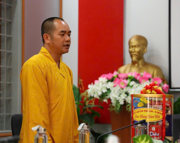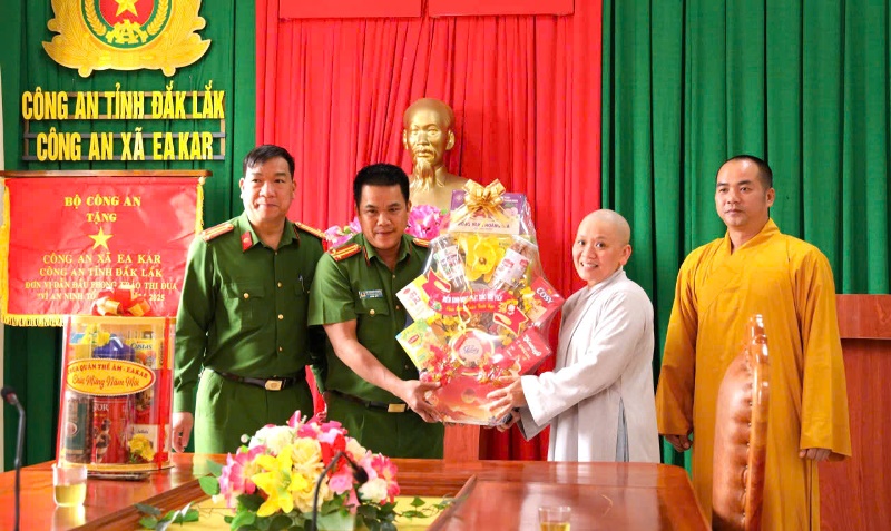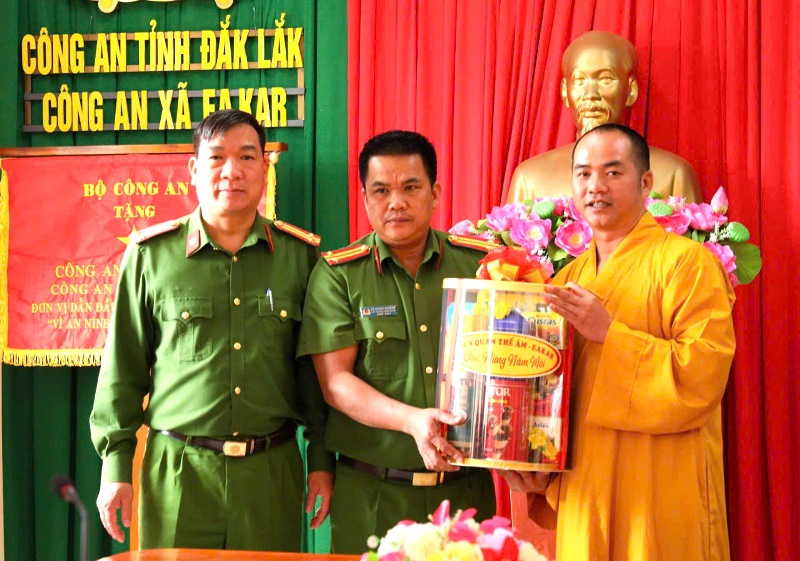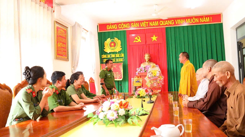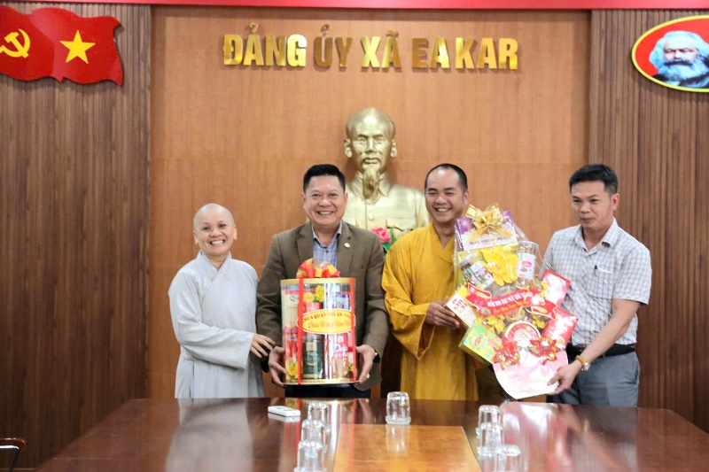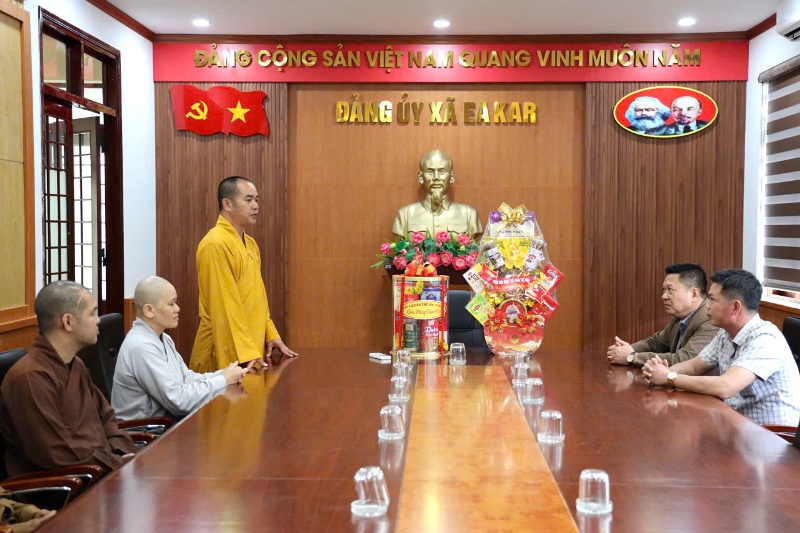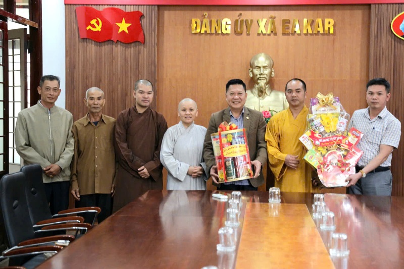 Hòa trong không khí vui tươi ngày Tết cổ truyền dân tộc, ngày 09/02/2026 (nhằm ngày 22/12 Ất Tỵ), dưới sự hướng dẫn của Đại đức Thích Minh Giáo - trụ trì chùa Quán Thế Âm - thôn Chư Cúc - xã Eakar làm trưởng đoàn cùng chư Tăng Ni, Ban Hộ trì Tam bảo cùng Điểm sinh hoạt (ĐSH) Phật giáo Tuệ Viên đến thăm và chúc tết lãnh đạo chính quyền xã Eakar.Theo chương trình đoàn đã đến thăm và chúc tết Đảng ủy HĐND - UBND - UBMTTQVN xã và Công an xã Eakar.