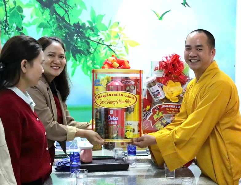 X.Eakar: Chùa Quán Thế Âm và Điểm sinh hoạt Phật giáo Tuệ Viên thăm chúc tết chính quyền địa phương