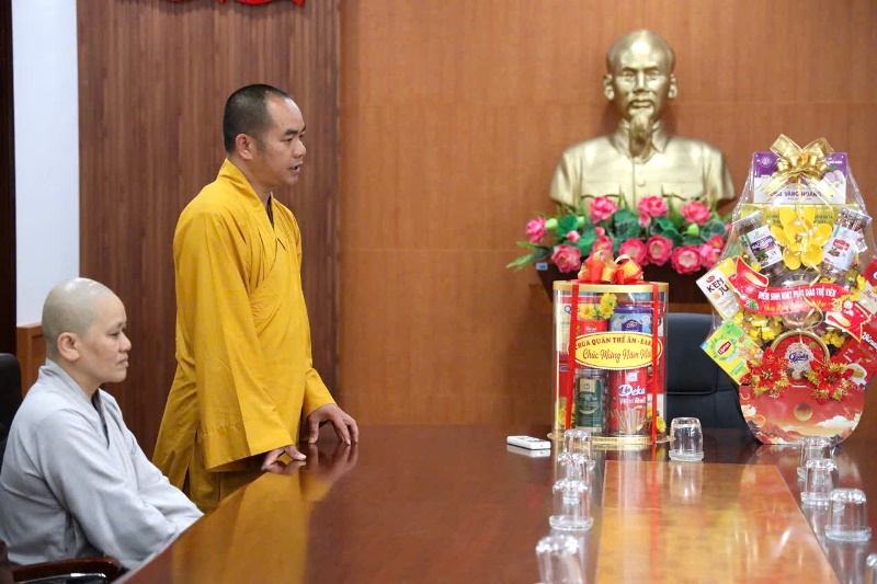 Đại đức Thích Minh Giáo thay mặt đoàn có lời thăm hỏi và cảm ơn đến các cấp lãnh đạo trong suốt thời gian qua đã nhiệt tình hỗ trợ Phật giáo xã nhà trong các hoạt động Phật sự, an sinh xã hội, từ thiện nhân đạo. Đặc biệt hỗ trợ chùa Quán Thế Âm di dời về cơ sơ mới, tạm thời an trí trong thời gian trước tết nguyên đán này. Sự kiện ý nghĩa này sẽ góp phần đẩy mạnh việc tu học, đáp ứng nhu cầu sinh hoạt tâm linh cho cộng đồng Phật tử địa phương.