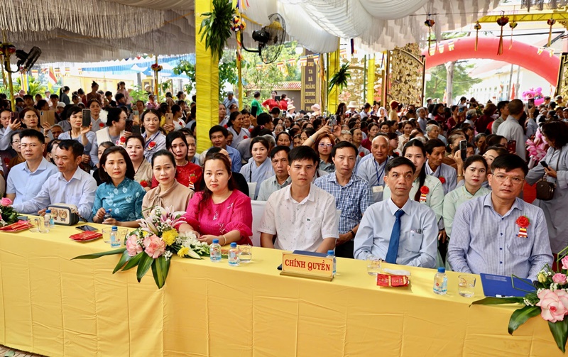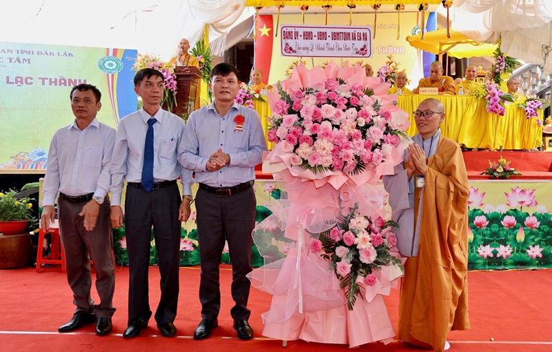 Đại diện quý cấp chính quyền, ông Nguyễn Minh Đông, Phó Bí thư, Chủ tịch UBND xã Ea Na, phát biểu chúc mừng. Ông nhấn mạnh việc trùng tu chùa Phước Tâm là hết sức cần thiết, nhằm đáp ứng được nhu cầu tu học ngày càng đông đảo của bà con Phật tử. Ông cũng đánh giá cao và ghi nhận sự nỗ lực, tâm huyết của Sư cô trụ trì và Ban hộ trì Tam Bảo đã vượt qua nhiều khó khăn trong việc triển khai và hoàn thiện công trình. Ông Chủ tịch UBND xã khẳng định sẽ tiếp tục đồng hành và tạo mọi điều kiện thuận lợi để chùa hoạt động ổn định theo quy định của pháp luật, trở thành điểm tựa tâm linh vững chắc, lan tỏa những giá trị đạo đức tốt đẹp trong cộng đồng xã hội.