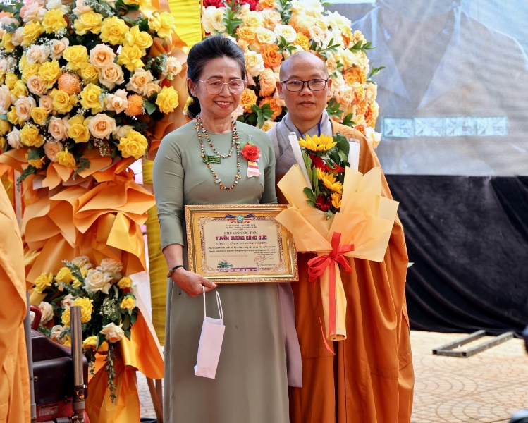 Đạo từ buổi lễ, Hòa thượng Thích Châu Quang tán thán công đức và rất hoan hỷ trước tinh thần đoàn kết, những cố gắng không ngừng nghỉ của Sư cô trụ trì cùng toàn thể Phật tử chùa Phước Tâm. Sau thời gian thi công với nhiều khó khăn, từ điều kiện kinh phí cho đến nhân lực, vật lực, nhưng nhờ sự gia trì của Tam Bảo, sự chung tay góp sức của chư Tôn đức, quý mạnh thường quân và Phật tử thập phương, công trình đại trùng tu chùa Phước Tâm đã được hoàn thành viên mãn. Hòa thượng tin tưởng rằng sự trang nghiêm và hoàn thiện của ngôi Tam Bảo Phước Tâm sẽ góp phần lớn lao, giúp hiện thực hóa tinh thần Phật giáo luôn đồng hành cùng dân tộc, hộ quốc an dân, đưa đời sống vật chất cũng như tinh thần của bà con Phật tử nói riêng và nhân dân xã Ea Na nói chung ngày càng đi lên và tốt đẹp hơn.