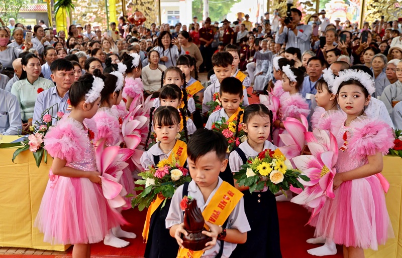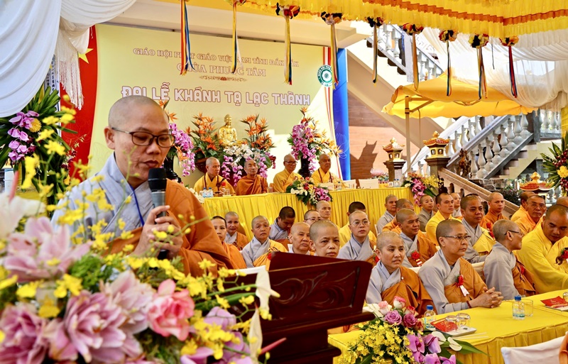 Phát biểu khai mạc, Sư cô Thích Nữ Thánh Vân – trụ trì chùa Phước Tâm trình bày tóm tắt quá trình đại trùng tu chùa. Theo đó, chùa được khởi công từ năm 2019, sau 7 năm thi công, đến nay đã cơ bản hoàn thành ngôi Đại hùng Bảo điện và các hạng mục thiết yếu. Sư cô tỏ lòng tri ân sâu sắc đến quý Tôn đức Tăng Ni, thầy Bổn sư và chư huynh đệ chùa Dược Sư; sự trợ duyên và đồng hành của Ban hộ trì Tam Bảo cũng như của chư Phật tử thập phương, của các cấp chính quyền trong suốt quá trình xây dựng và trang nghiêm ngôi Tam Bảo chùa Phước Tâm; nhờ đó tứ chúng có đầy đủ điều kiện tu học Phật pháp, nuôi dưỡng Bồ đề tâm, góp một phần quan trọng giúp nâng cao đời sống văn hóa tâm linh của xã nhà.