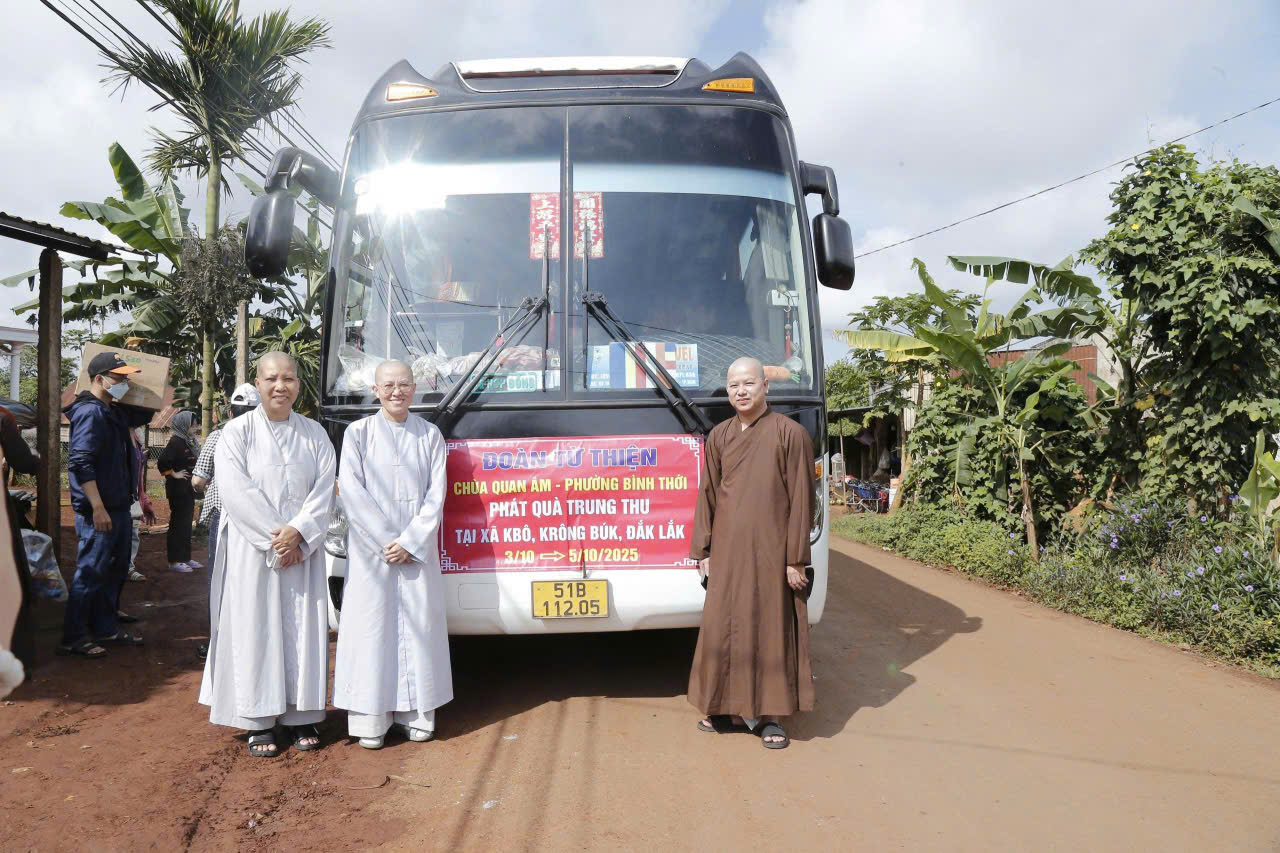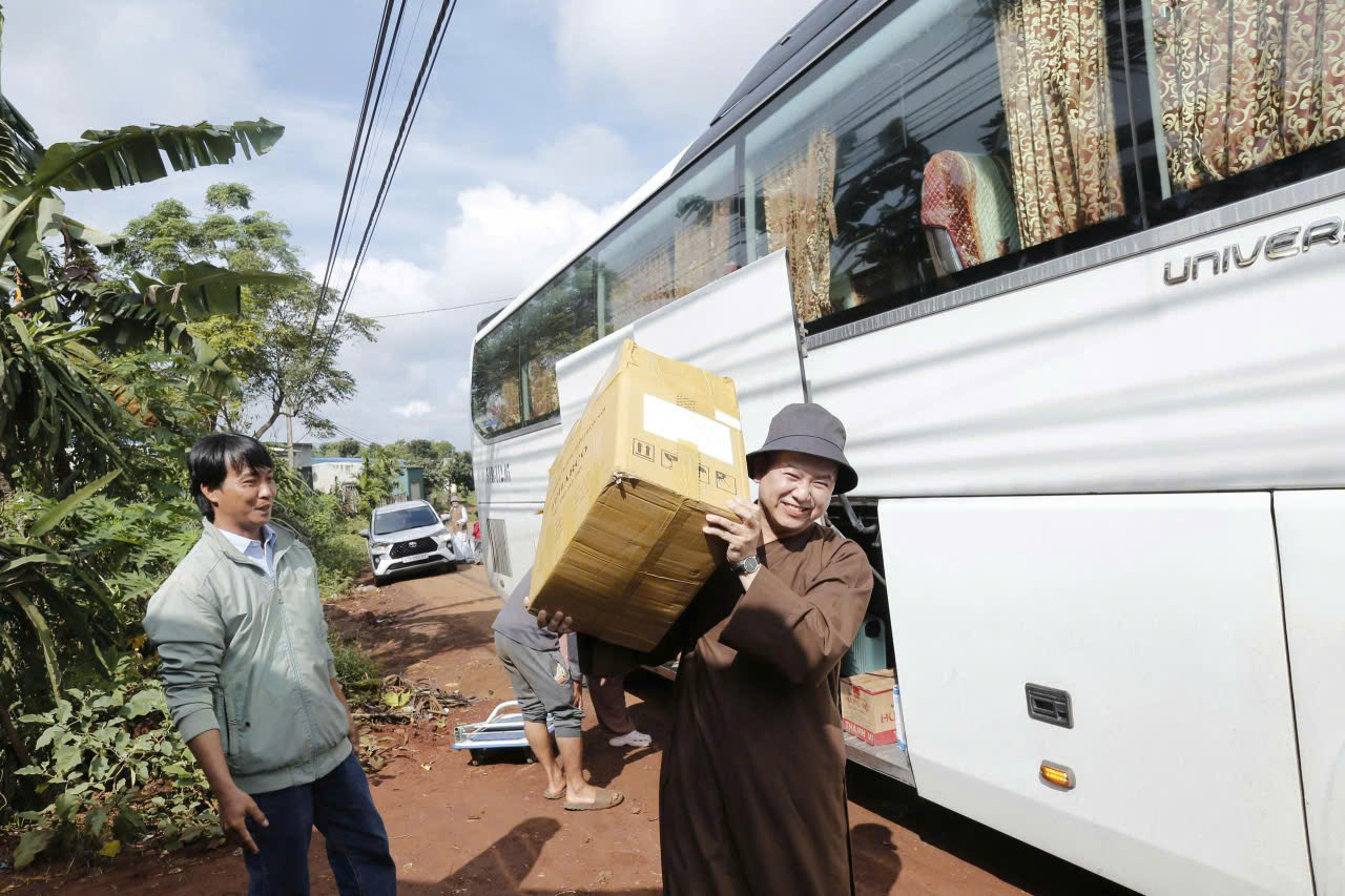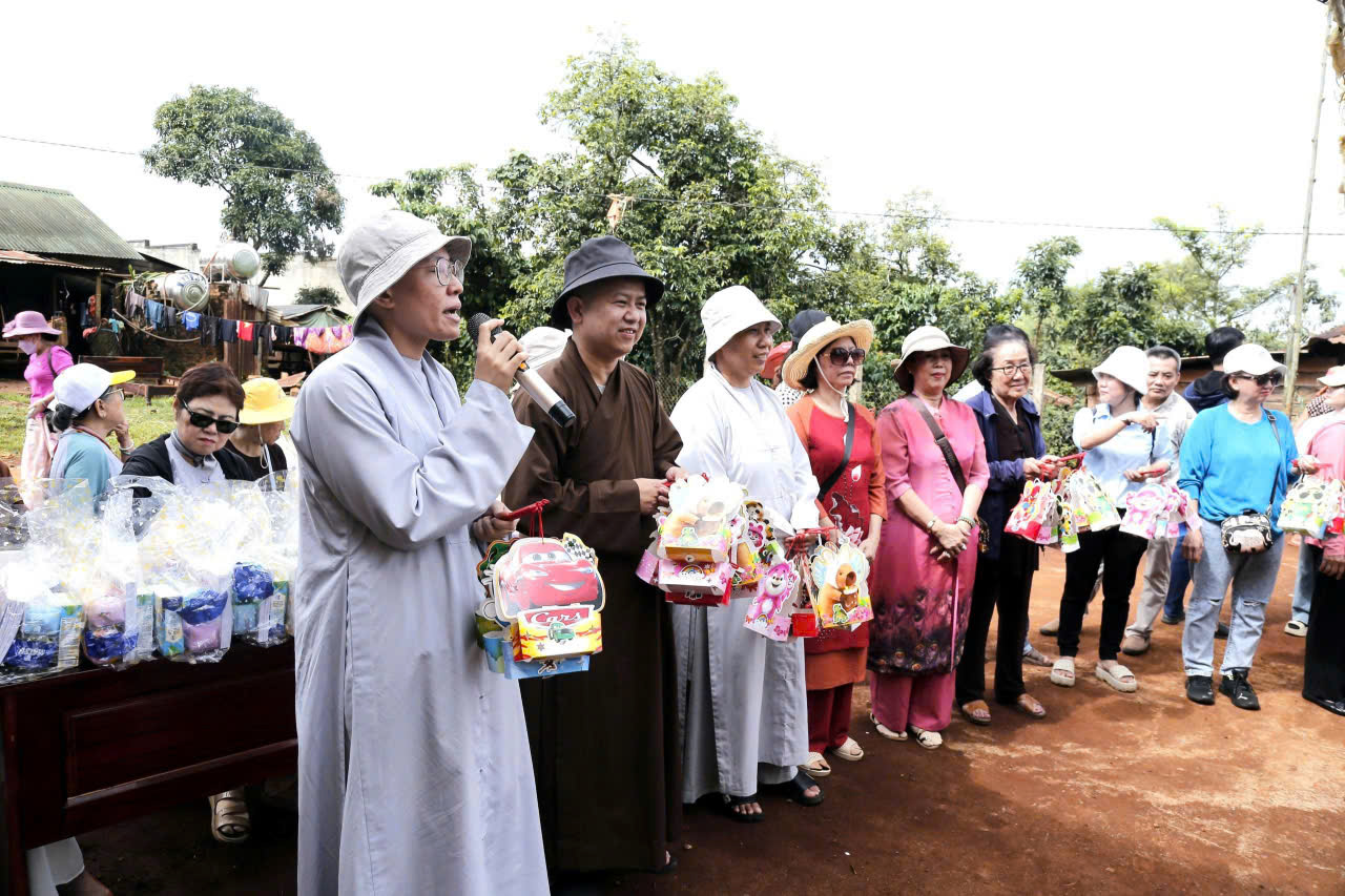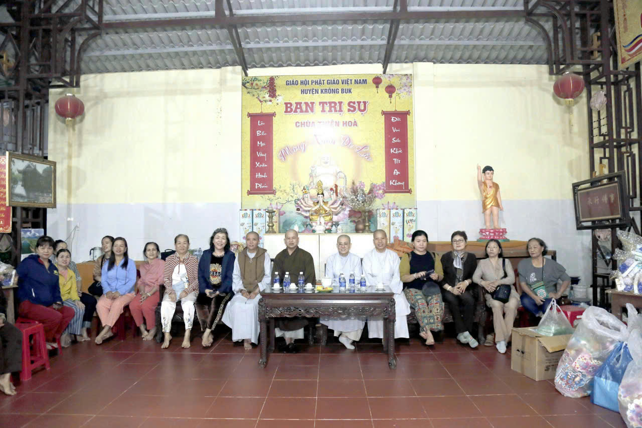 Đoàn thiện nguyện do Sư cô Thích nữ Chúc Trí, chùa Quan Âm, thành phố Hồ Chí Minh làm trưởng đoàn; tháp tùng đoàn thiện nguyện có phái đoàn Pháp Hoa do Ni sư Thích nữ Chúc Thời, trụ trì chùa Thiên Trúc (xã Krông Năng, tỉnh Đắk Lắk) làm trưởng đoàn; cùng quý Phật tử, các nhà hảo tâm đến từ thành phố Hồ Chí Minh.