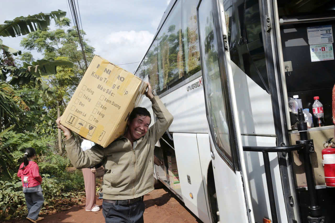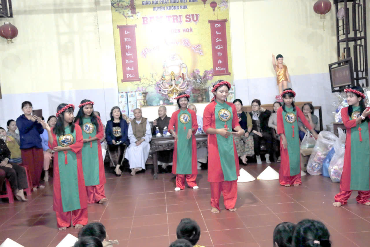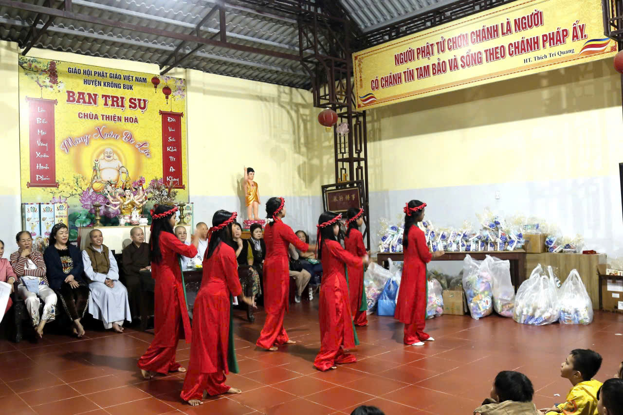 Đại đức Thích Quảng Nguyện, trụ trì chùa Thiện Hòa (xã Krông Búk), tiếp đón và hướng dẫn đoàn. Tại buôn Drah1, đoàn trao 200 phần quà cho các em người đồng bào; gửi cho Đoàn Thanh niên buôn Đrao 200 phần; phát 100 phần tại thôn Eakrom. Phái đoàn Pháp Hoa cũng đã trao 200 phần tại buôn Đrao.