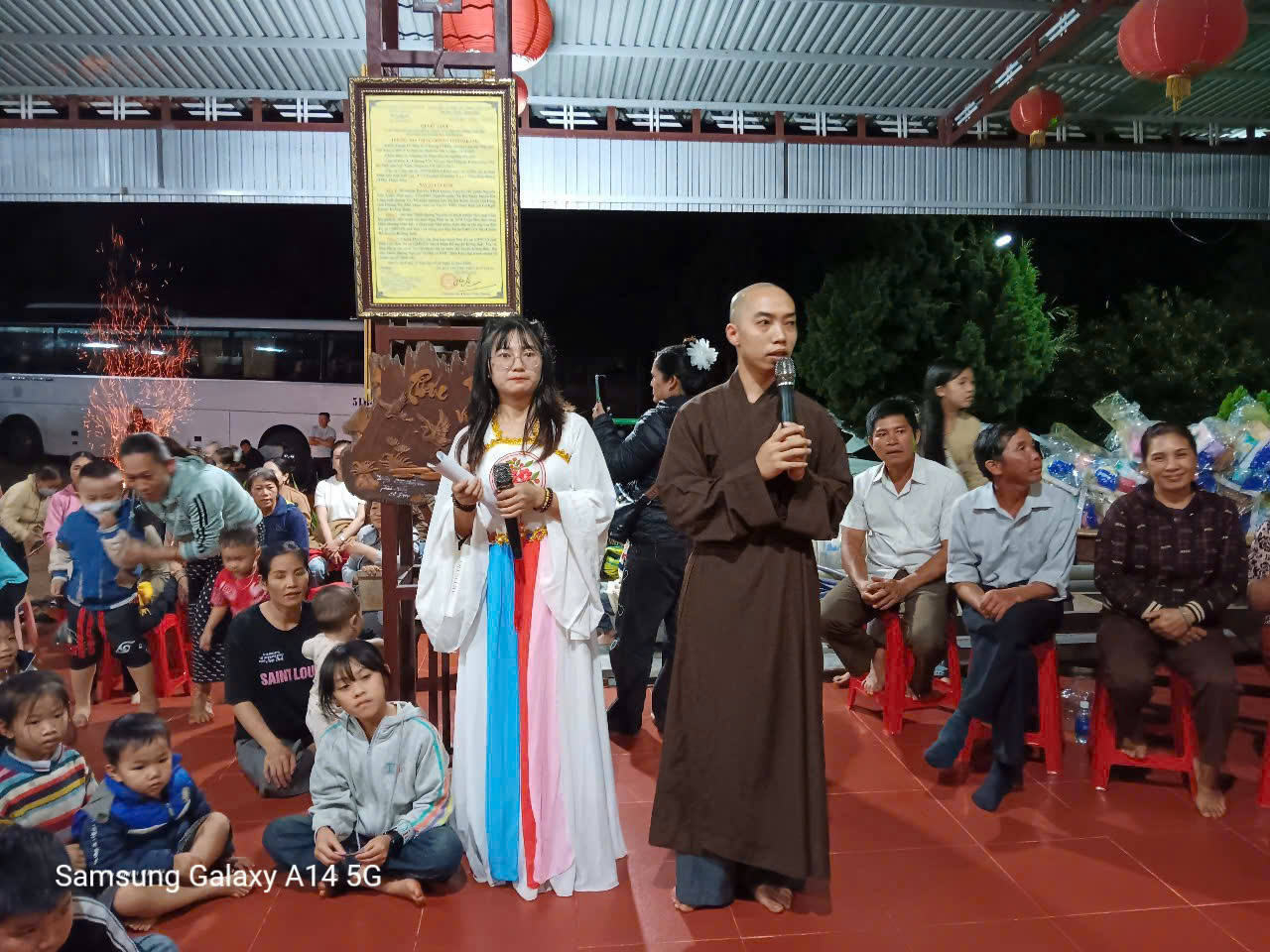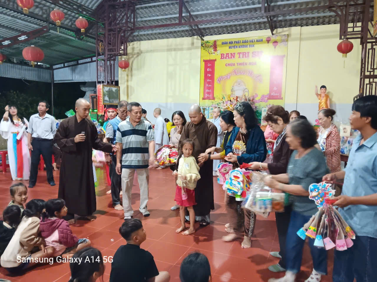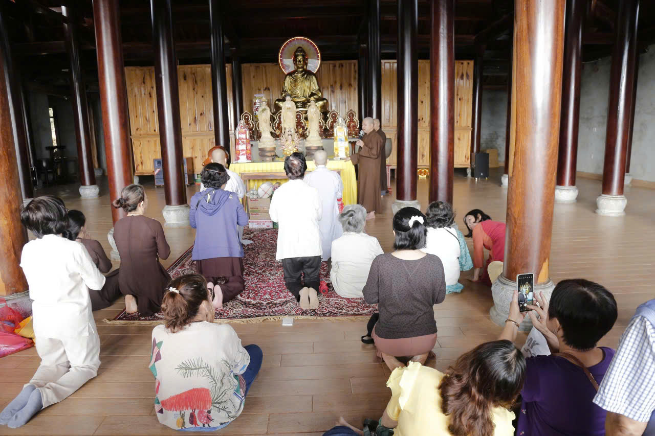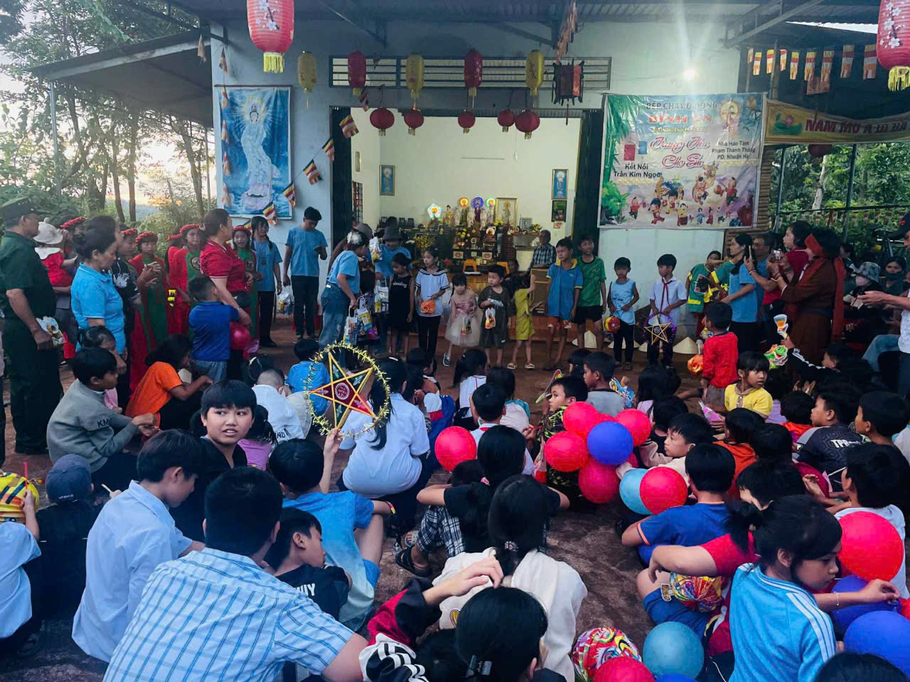 Vào lúc 19h tối cùng ngày, đoàn phát 350 phần quà và đốt lửa trại tổ chức vui hội trăng rằm, văn nghệ cho các em thiếu nhi tại chùa Thiện Hòa. Nhân dịp này, đoàn về chùa Thiện Hòa phát nguyện tụng kinh Địa Tạng, nguyện cầu Phật pháp trường tồn, đất nước bình an.