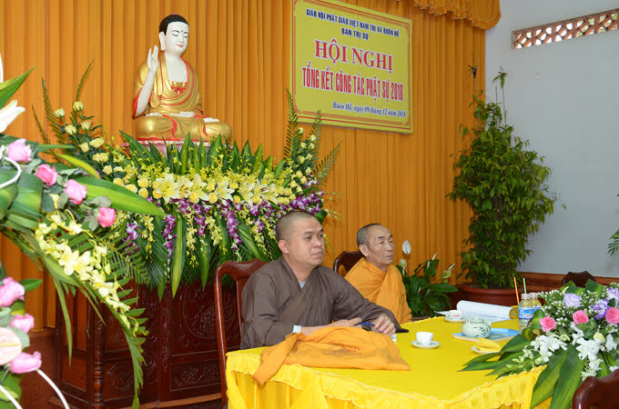 Trước khi hội nghị kết thúc TT. Thích Giác Tiến, Phó trưởng ban Thường trực BTS GHPVN tỉnh có tham gia góp ý với bản báo cáo và động viên các đon vị trong toàn Thị xã với những gì mà năm qua chưa làm được còn tồn tại thì chúng ta năm tới phải làm cho bằng được. Các thành viên trong Ban Trị sự cần phải phát huy tinh thần đoàn kết để chung tay góp phần xây dựng GHPGVN nói chung và GHPGVN. TX Buôn Hồ nói riêng ngày một phát triển và đi lên trên bước đường phụng sư đạo pháp và dân tộc.
