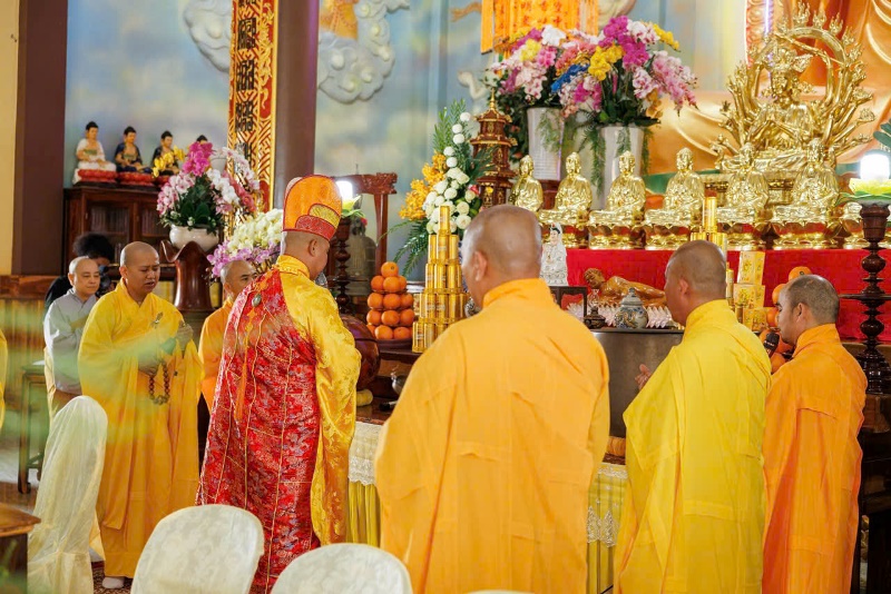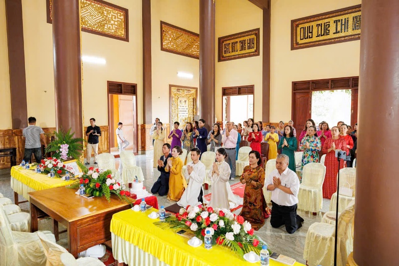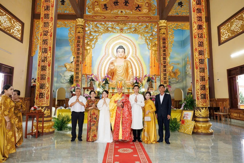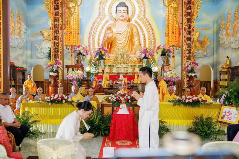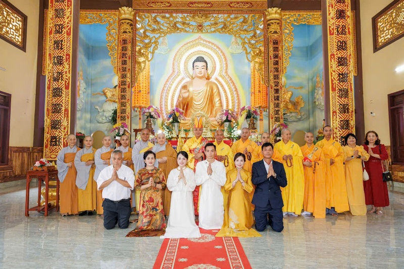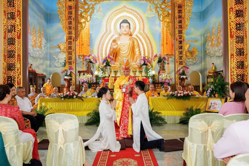 Buổi lễ được cử hành theo nghi thức truyền thống Phật giáo. Trước điện Phật trang nghiêm, chư Tôn đức đã ban lời huấn từ nhằm sách tấn đôi nam nữ Phật tử về bổn phận và trách nhiệm của người Phật tử tại gia trong việc xây dựng đời sống hôn nhân trên nền tảng Chánh pháp. Sau lời phát nguyện của đôi tân lang và tân nương buổi lễ Hằng thuận đã khép lại hoàn mãn với lời tri ân của quan viên hai họ và nghi thức hồi hướng.