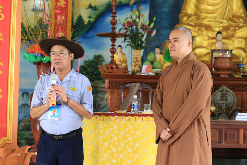 Đáp lại tấm chân tình của quý chư Tôn đức đã dành cho GĐPT ĐakLak, đặc biệt Liên trại huấn luyện huynh trưởng Lộc Uyển 6 – A Dục 8 năm 2019. Sáng nay, vào lúc 9 giờ 30 phút ngày 4/7/2019 (Nhằm ngày 2/6 Kỷ Hợi). HTr cấp Tấn: Nguyên Thơ – Ngô Đức Lộc, Ủy viên BHD GĐPT Trung ương, Phó ban thường trực BHD- Phân ban GĐPT Đaklak, Cố vấn Liên trại huấn luyện A Dục VI – Lộc Uyển VIII. Chị HTr cấp Tấn: Nguyên Thái – Nguyễn Thị Khỏe, Phó BHD Phân ban GĐPT ĐakLak, Trại phó điều hành Liên trại huấn luyện A Dục VI – Lộc Uyển VIII ,cùng các anh chị HTr Ban quản trại đại diện cho hơn 200 Huynh trưởng cùng trại sinh về tại Chùa Kim Quang, xã Phú Xuân, huyện Krông Năng văn phòng BTS GHPGVN huyện Krông Năng, cũng là nơi trường hạ của quý chư Tôn đức, để thực hiện việc cúng dường chư Tôn giáo phẩm, Đại đức Tăng nhân mùa an cư kiết hạ PL 2563 – DL 2019. Đại đức Thích Tâm Thiện, Tri sự trú xứ trường hạ chùa Kim Quang thay mặt Đại đức trụ trì hân hoan chào đón các thành viên Ban quản trại tiếp nhận tịnh tài cúng dường và hứa khả thọ nhận. Đồng thời nguyện cầu hồng ân Tam bảo gia hộ cho quý anh chị Phân ban GĐPT Đăk Lăk, Ban Quan trại liên trại huấn luyện Lộc uyển – A Dục 2019, thân khỏe tâm an, dõng mãnh tinh tấn hoàn thành trách nhiệm của tổ chức giao phó.