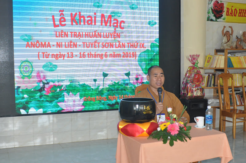 Đúng 8 giờ ngày 14/6/2019 toàn thể Ban quản trại và trại sinh liên trại Anoma –Ni liên – Tuyết sơn khóa IX long trọng tổ chức lễ khai mạc với sụ hiện diện quang lâm chứng minh của Đại Đức Thích Nguyên Thân,Ủy viên BTS GHPGVN Tỉnh ĐakLak, chánh thư ký BTS GHPGVN Huyện Krông Bông , Trưởng ban hưởng dẫn Phật tử Huyện Krông Bông, Trụ trì Chùa Phước Lâm và cũng là trưởng ban cố vấn liên trại Anoma – Niliên - Tuyết sơn. Đại Đức Thích Giác Hiền,Ủy viên hoằng pháp BTS GHPGVN Tỉnh ĐakLak,Trưởng ban hoằng pháp BTS GHPGVN Huyện Krông Bông ,Trụ trì Chùa Phước Vân. Sư cô Thích Nữ Tuệ Đạt,Trụ xứ NPĐ Phước Bảo xã YangReh.