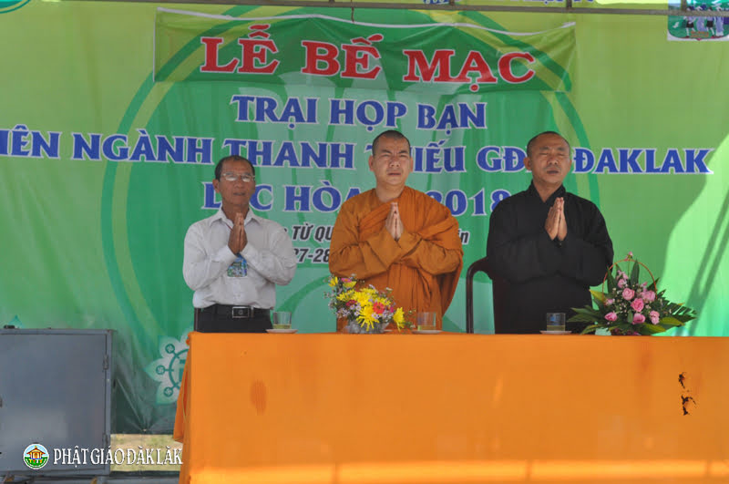 Chiều ngày 29/7/2018 (Nhằm ngày 17/6 Mậu Tuất) tiến hành tổ chức lễ bế mạc hội trại Lục Hòa lần thứ nhất nhằm tổng kết nhận xét những ưu và nêu lên những tồn tại thiếu sót của hội trại để có những bài học quý báu cho những hội trại sau này. Quang lâm chứng minh lễ bế mạc trại dưới sự hiện diện Đại Đức Thích Tâm Định: Phó ban Hướng dẫn Phật tử Tỉnh Đaklak. Đại Đức Thích Tâm Từ: Ủy viên BTS GHPGVN Tỉnh, Trưởng BTS GHPGVN Huyện CưKuin, Trụ trì Chùa Từ Quang cùng sự hiện diện Bác chánh đại diện Ban hộ trì Tam Bảo Chùa Từ Quang. Về phía BHD/PBGĐPT Đak Lak có anh Huynh trưởng Cấp Tần Nguyên Thơ Ngô Đức Lộc: Ủy viên BHD GĐPT Trung ương,Phó BHD/PB GĐPT Tỉnh ĐakLak, Trại trưởng trại Lục Hòa 1 cùng toàn thể quý anh chị huynh trưởng các cấp trong BHD/PB GĐPT ĐakLak, Ban quản trại họp bạn liên ngành thanh thiếu GĐPT ĐakLak và 609 trại sinh tham dự hội trại Lục Hòa 1. Trong buổi lễ toàn thể trại sinh được lắng nghe anh huynh trưởng Cấp Tấn Tâm Niệm, Lê Phước Tưởng thay mặt Ban quản trại báo cáo tổng kết trong ba ngày trại và trao tặng phần thưởng cho các đơn vị GĐPT cùng cá nhân đạt kết quả cao ở các cuộc thi trong hội trại. Tiếp đến anh huynh trưởng Cấp Tấn Nguyên Thơ, Ngô Đức Lộc: Ủy viên BHD GĐPT Trung ương,Phó BHD/PB GĐPT Tỉnh ĐakLak, Trại trưởng trại Lục Hòa I tuyên bố bế mạc và nhận lại còi lệnh từ huynh trưởng Cấp Tấn Nguyên Lại, Huỳnh Vĩnh Phúc trại phó điều hành. Đồng thời trong lễ bế mạc toàn thể Ban quản trại và trại sinh lắng đọng tâm tư được nghe lời đạo từ của Đại Đức Thích Tâm Định: Phó ban Hướng dẫn Phật tử Tỉnh Đaklak chúc mừng hội trại thành công và gởi gắm tình thương yêu đến toàn thể trại sinh với một mong muốn tổ chức GĐPT Tỉnh ĐakLak ngày một vững tiến, cống hiến nhiều cho tổ chức phụng sự đạo pháp dân tộc. Kết thúc lễ bế mạc nhị vị Đại Đức và đại diện ban hộ trì Tam Bảo Chùa Từ Quang đã hoà cùng huynh trưởng và 609 đoàn sinh GĐPT tham dự trại, tay trong tay kết chặt “Dây thân ái” tạm chia tay nhau trong tình thương yêu, lưu luyến thắm tình đạo vị./.