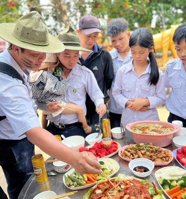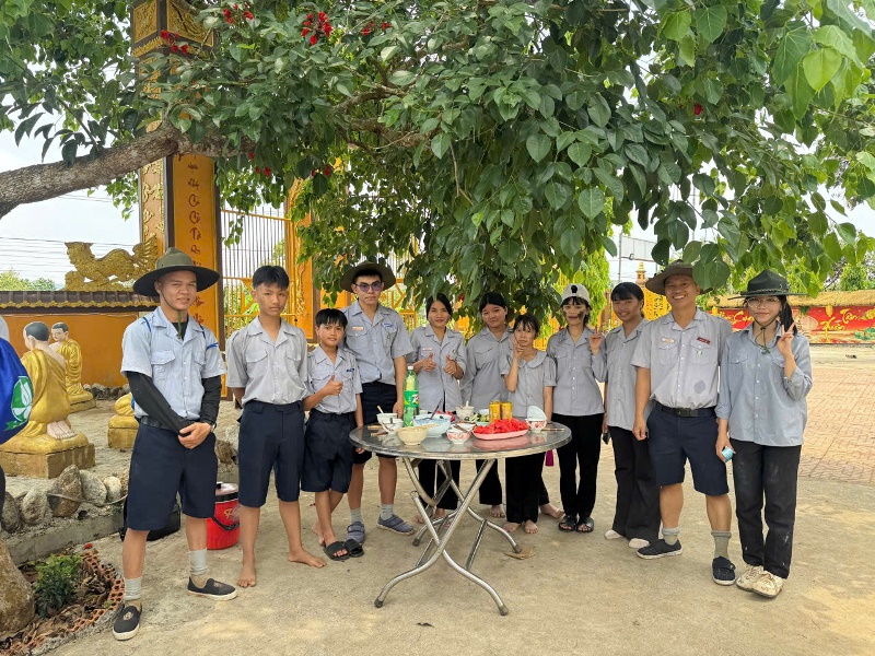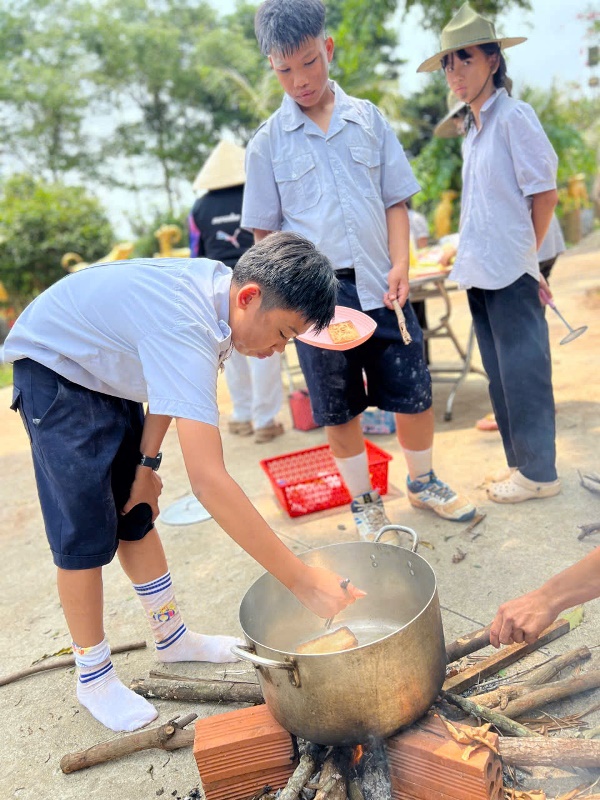 Bên cạnh đó, dưới sự hướng dẫn của quý anh chị huynh trưởng, các em được chia thành từng nhóm, tổ để cùng nhau thực hành nấu ăn, sinh hoạt tập thể trong tinh thần lục hòa, đoàn kết và yêu thương. Hoạt động này góp phần nuôi dưỡng tinh thần tự lập, ý thức trách nhiệm và kỹ năng làm việc nhóm - những hành trang cần thiết cho sự trưởng thành của mỗi đoàn sinh.