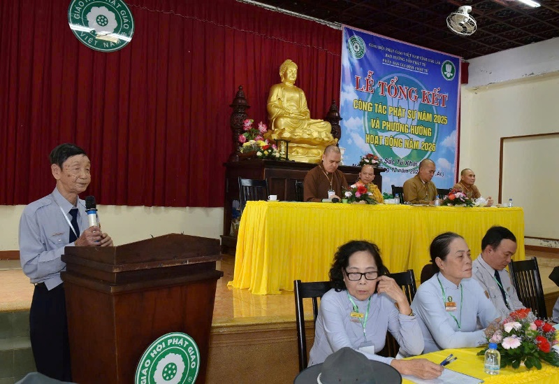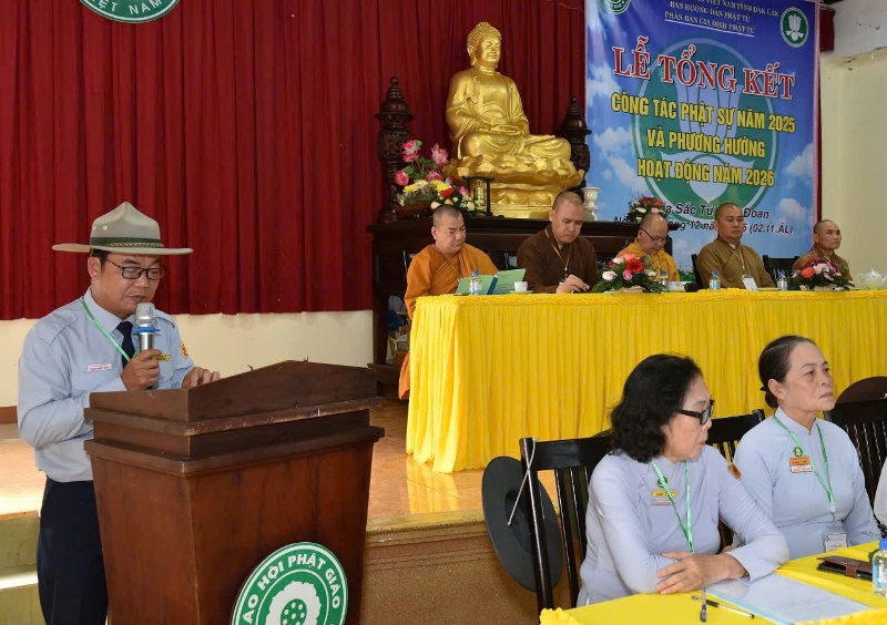 Huynh Trưởng cấp Tấn Đồng Nhuận Lê Xuân Tươi Trưởng Phân Ban GĐPT tỉnh lên đọc diễn văn khai mạc, nêu rõ ý nghĩa của hội nghị đối với việc nhìn lại hoạt động Phật sự năm qua, đồng thời định hướng cho các hoạt động của GĐPT trong năm tới. Tiếp theo, Huynh Trưởng cấp Tấn Quảng Lai Tô Đông Hậu - Phó Thư ký Phân Ban đã trình bày báo cáo tổng kết công tác Phật sự năm 2025 và phương hướng hoạt động năm 2026.
