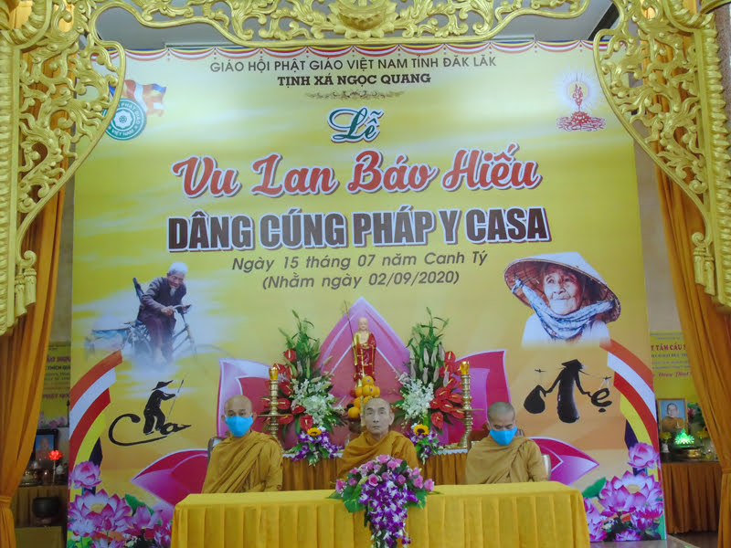 Tham dự lễ Vu Lan Báo hiếu dưới sự quang lâm chứng minh của TT. Thích Giác Tiến Ủy viên HĐTS, Phó Thường trực Ban Trị sự GHPGVN tỉnh Đắk Lắk, Phó Tri sự Giáo Đoàn III HPKS, Phó trụ trì Tịnh xá Ngọc Quang; ĐĐ Thích Giác Phổ Phó BTS Trưởng Ban Hoằng Pháp tỉnh Đắk Lắk, Phó Ban Hoằng Pháp Giáo đoàn III, quản chúng Tăng tịnh xá Ngọc Quang; ĐĐ Thích Giác Quân Ủy viên Ban Hoằng Pháp tỉnh, cùng chư tôn đức Tăng trú xứ Tịnh xá Ngọc Quang.