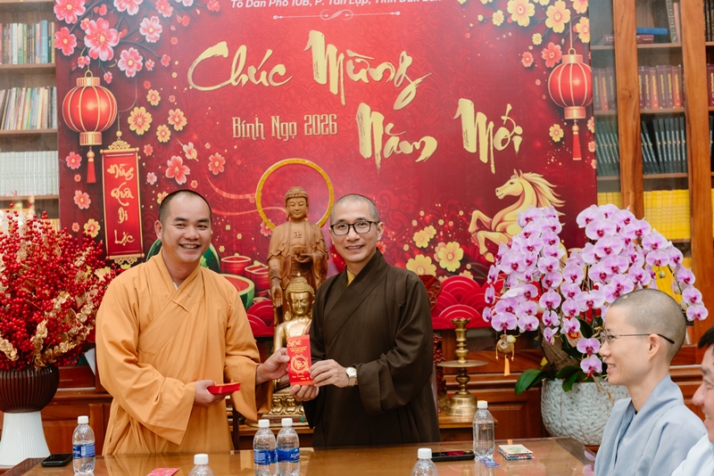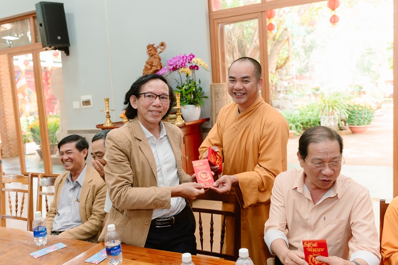 Nhân dịp đầu xuân mới, chư tôn đức gửi lời chúc mừng và trao tặng phong bao lì-xì mừng tuổi đến toàn thể thành viên hiện diện, cầu chúc một năm mới bình an, hạnh phúc, tinh tấn phụng sự cho công tác truyền thông của Giáo hội và Phật giáo tỉnh nhà đạt được nhiều thành tựu tốt đẹp, ngày càng lan tỏa tinh thần trí tuệ và từ bi của đạo Phật đến bà con nhân dân. Buổi gặp mặt thành công tốt đẹp, thể hiện tinh thần đoàn kết, hòa hợp và cầu thị của toàn thể thành viên Ban.