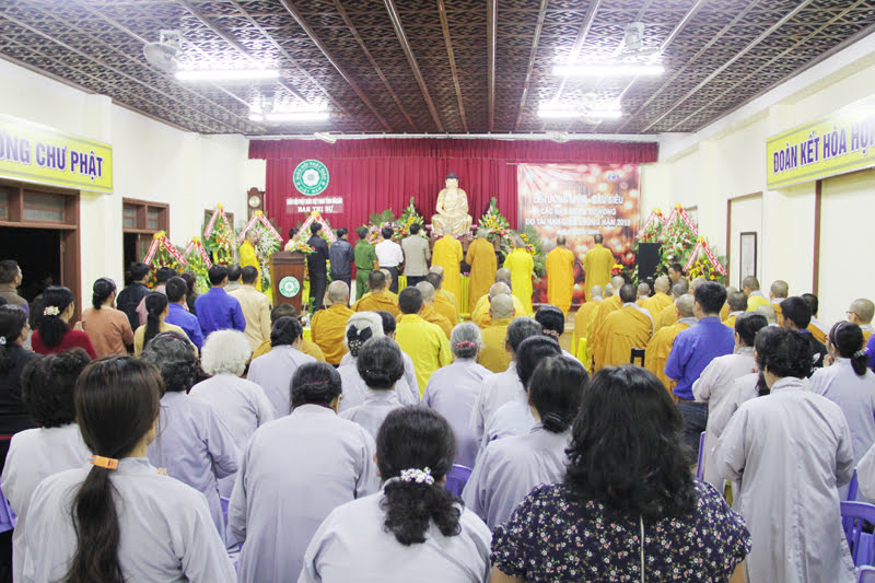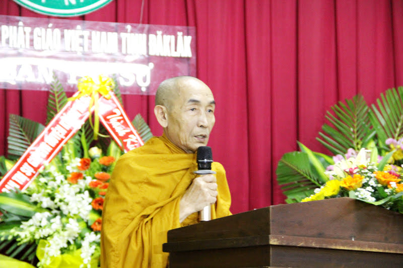 TT Thích Giác Tiến , UV HĐTS, Phó Trưởng ban Thường trực BTS GHPGVN tỉnh Đăk Lắk đã đọc lời tưởng niệm : “ Đứng về mặt Tôn giáo nói chung và đạo Phật nói riêng chúng tôi luôn hướng lòng cầu nguyện “Phong điều vũ thuận - Quốc thái dân an – Binh qua đốn tức - Thế giới hoà bình – Chúng sinh an lạc”. Đó là tâm nguyện của người con Phật, tu hành theo hạnh từ bi, ban vui cứu khổ của chư Phật đã dạy và đó cũng là truyền thống hộ quốc an dân của đạo Phật Việt Nam qua lịch sử truyền thừa của chư Tổ.