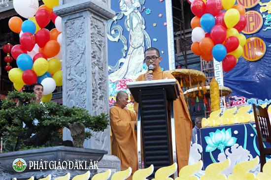 Ông Y DecHĐok CT UBMTTQVN tỉnh phát biểu... “ Trong không khí chào đón ngày Đức Phật đản sinh, tôi tin tưởng rằng chư tôn đức Giáo Phẩm cùng toàn thể tăng, ni Phật tử sẽ tiếp tục thực hiện tốt Phương châm. “ Đạo Pháp – Dân tộc – Chủ nghĩa xã hội” không ngừng phát huy truyền thống tốt đẹp của Phật giáo Việt Nam, hưởng ứng và tham gia tích cực các phong trào , các cuộc vận động do ủy ban trung ương MTTQ Việt Nam phát động; khuyến khích Tăng Ni tích cực thực hành đời sống đạo hạnh, giữ gìn giới luật, thực hiện nếp sống thanh bần giản dị, phục vụ chúng sinh của người tu sĩ Phật giáo”
