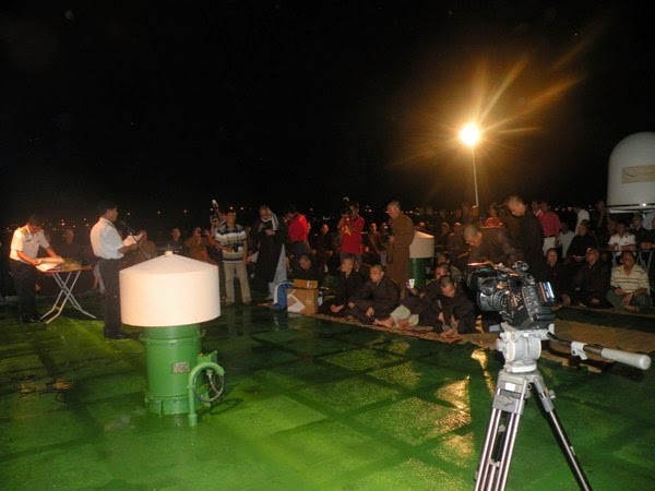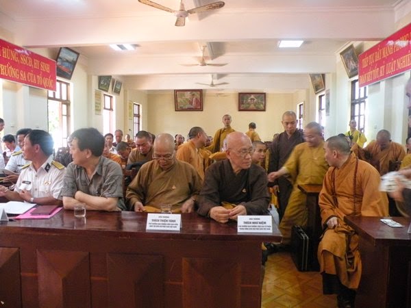 9.30g máy bay trực thăng của Không Quân đưa giáo phẩm Trung ương đến, có sự hộ tống của cặp Su – chiến đấu cơ của Liên sô sản xuất.Phía Nam có HT Như Niệm – HT Thiện Tánh – TT Nhật Từ - TT Quang Thạnh, phía Bắc có HT Gia Quang – TT Thanh Điện – TT Thọ Lạc – TT Thanh Phụng – TTT Thanh Dũng – TT Minh Quang. Ban chỉ huy đảo trường Sa cùng chư tôn đức quang lâm hội trường. Giới thiệu thành phần tham dự, báo cáo sinh hoạt, trao quà lưu niệm, thăm viếng đảo...sau đó, làm lễ cầu an tại tượng đài Quán Âm.