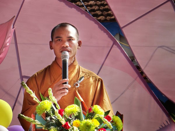 Đạo Hữu Đồng Bình Phó Ban Hộ Tự đọc Diễn Văn Phật Đản của HĐTSPGVN.