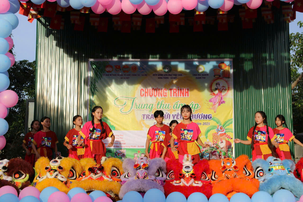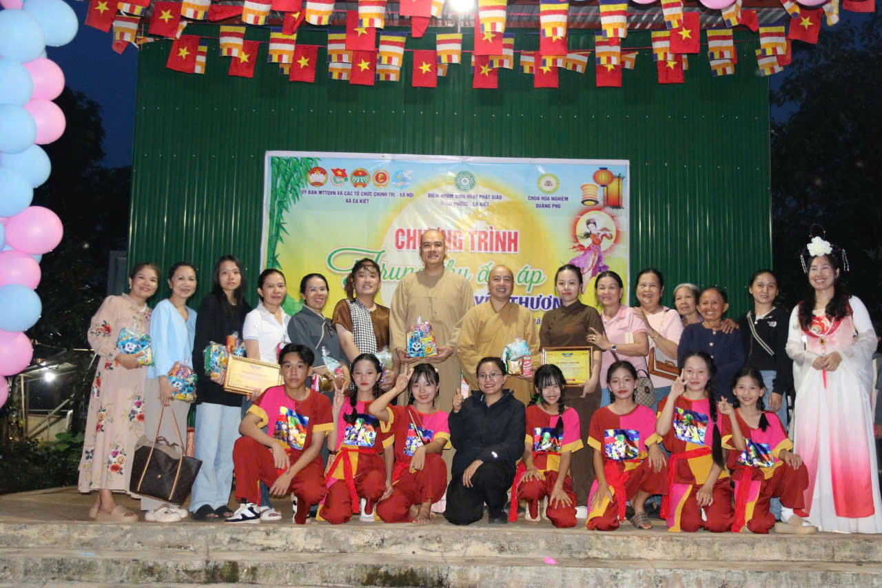 Chương trình đã trao tặng 600 phần quà đến các em thiếu nhi trên địa bàn xã. Mỗi phần quà trị giá 50.000 đồng, tổng kinh phí 30 triệu đồng. Điều này thể hiện sự quan tâm của chư Tôn đức Tăng và quý Phật tử hướng về thế hệ mầm non của đất nước.