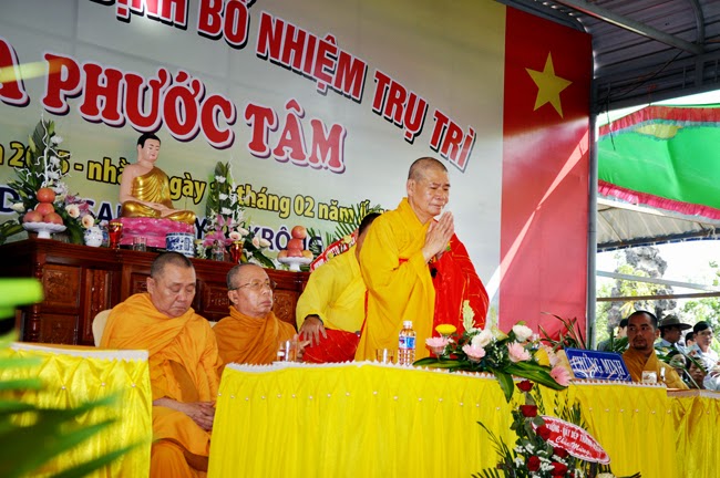 Ban Đạo từ Chứng minh - Thượng Toạ Thích Châu Quang cảm ơn sự quan tâm của Chính quyền các cấp, đã chấp thuận cho Sư cô về Trụ trì Chùa Phước Tâm. Tinh thần của Phật Giáo là “Giáo dân vi Thiện” cho nên phật tử Bổn tự phải tinh tấn tu hành, làm được nhiều việc thiện lành lợi mình lợi người, trang nghiêm Giáo Hội…”