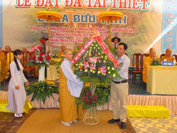Buổi lễ được vinh dự đón các vị đại diện chính quyền: Ông Trương Văn Tỵ vụ trưởng vụ tôn giáo và dân tộc Ban Chỉ Đạo Tây Nguyên. Ông Nghiêm Văn Chuẩn Phó Trưởng Ban Tôn Giáo tỉnh DakLak. Ông Nguyễn Hữu Toàn Phó bí Thư Đảng Ủy Chủ tịch HĐND xã Hòa Xuân, Ông Nguyễn Đức Thuận Phó bí Thư Đảng Ủy, Chủ tich UBND xã, Ông Ydju Phó CT UBMTTQVN xã và các cơ quan ban ngành của xã và thôn sở tại. Về góp phần công đức và cầu nguyện cho buổi lễ có trên 2000 phật tử các giới gần xa đã vân tập dự lễ.