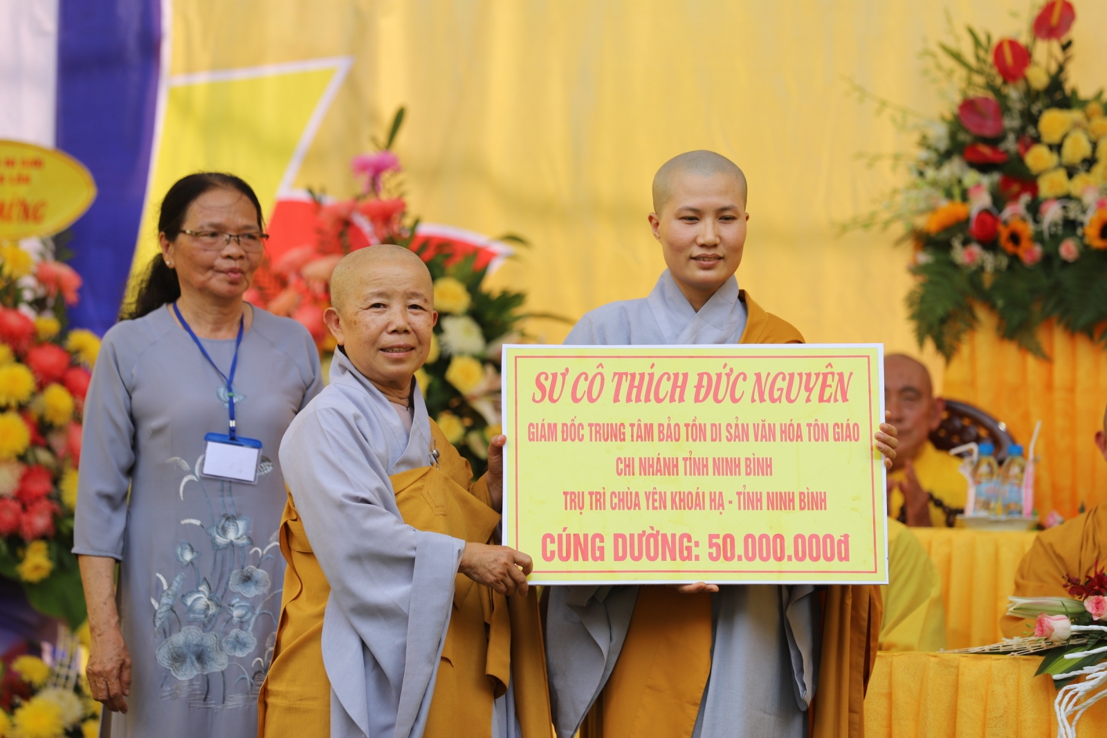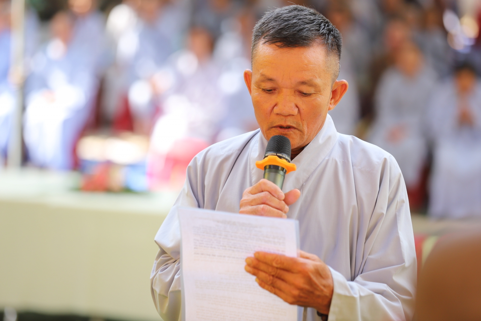 Đại diện hàng cư sĩ Phật tử, đạo hữu Đức Nhu đã phát nguyện chí thành, bày tỏ niềm xúc động, đồng thời kêu gọi chư Phật tử, mạnh thường quân cùng phát tâm đóng góp tịnh tài, tịnh vật để công trình sớm được hoàn thành.