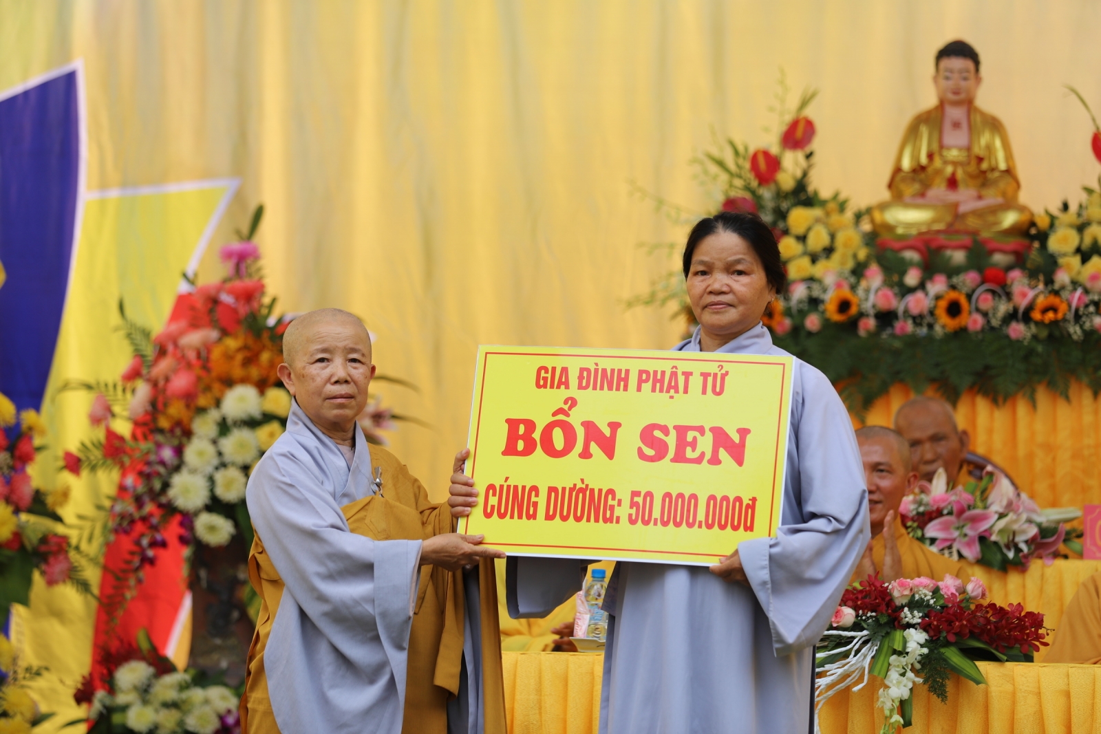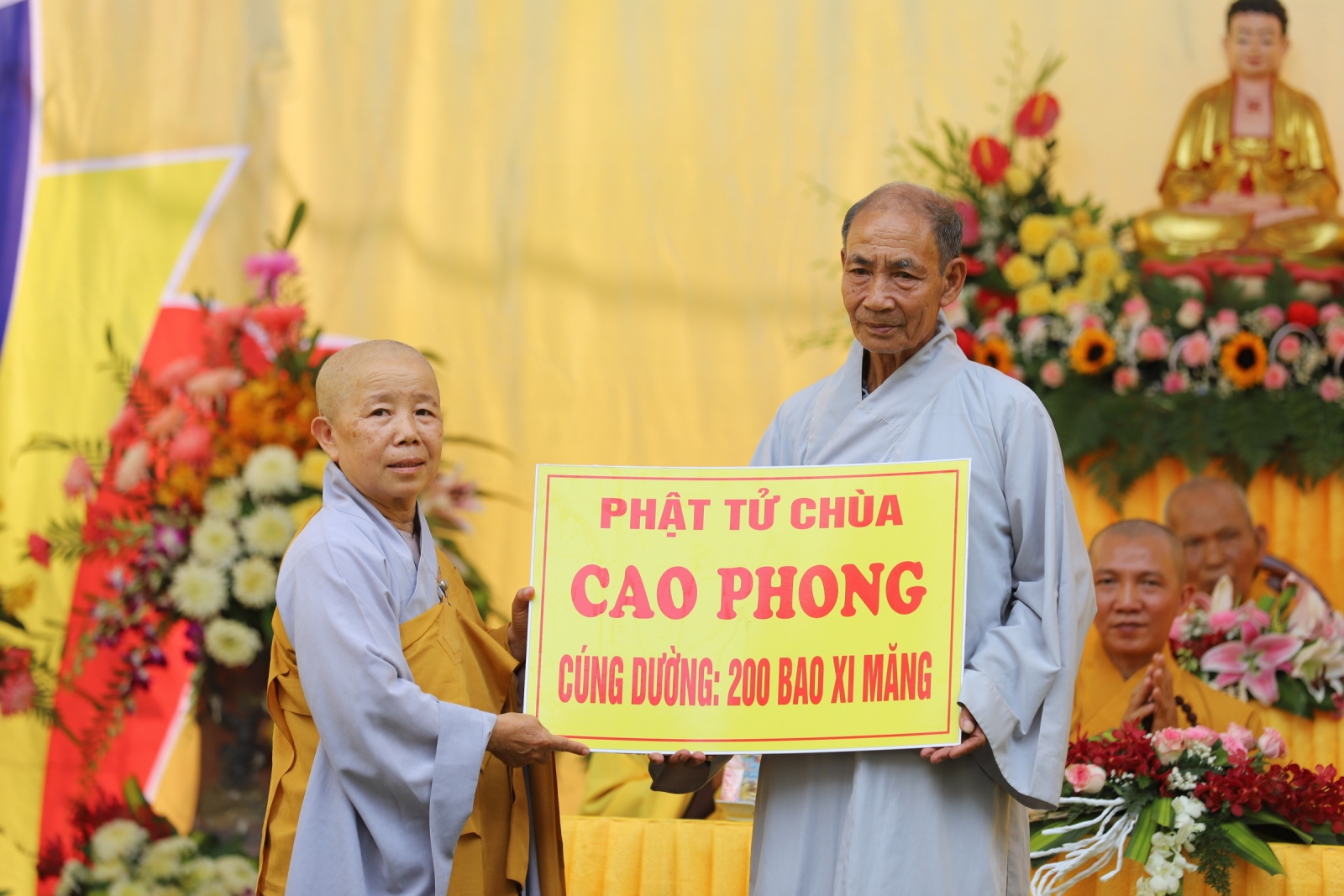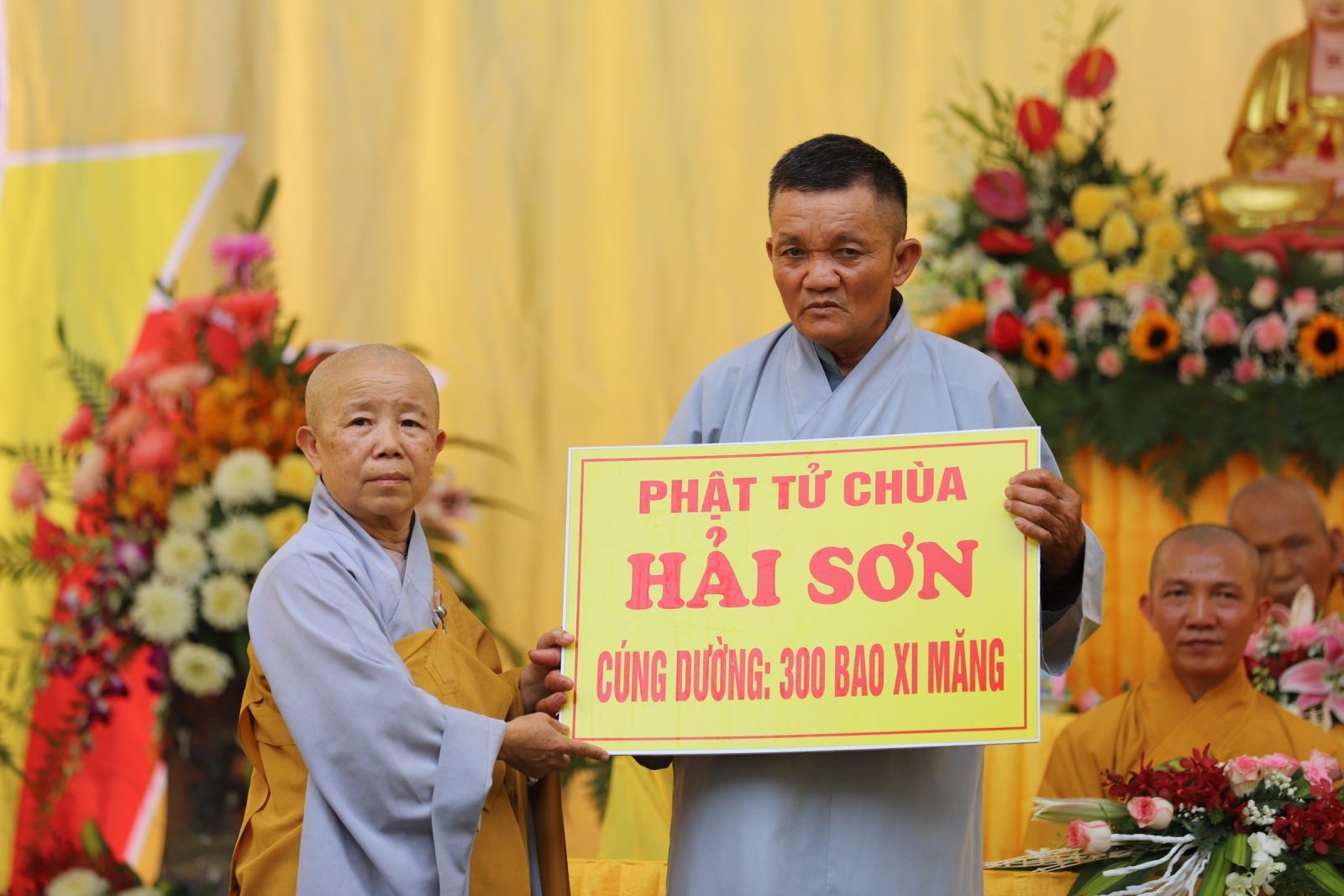 Tại buổi lễ, Ban Tổ chức đã đón nhận nhiều lẵng hoa chúc mừng và sự phát tâm chung tay góp sức đại trùng tu chùa Hải Sơn.