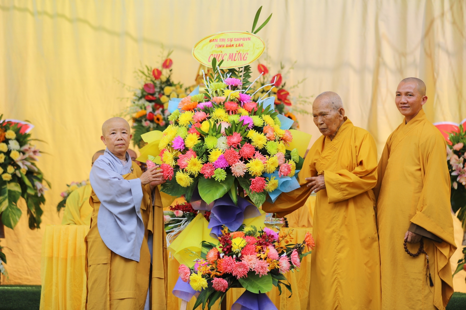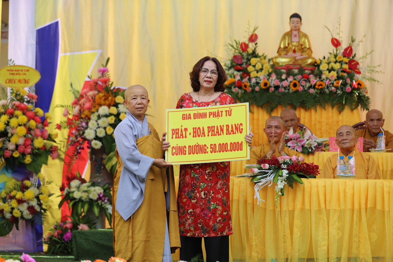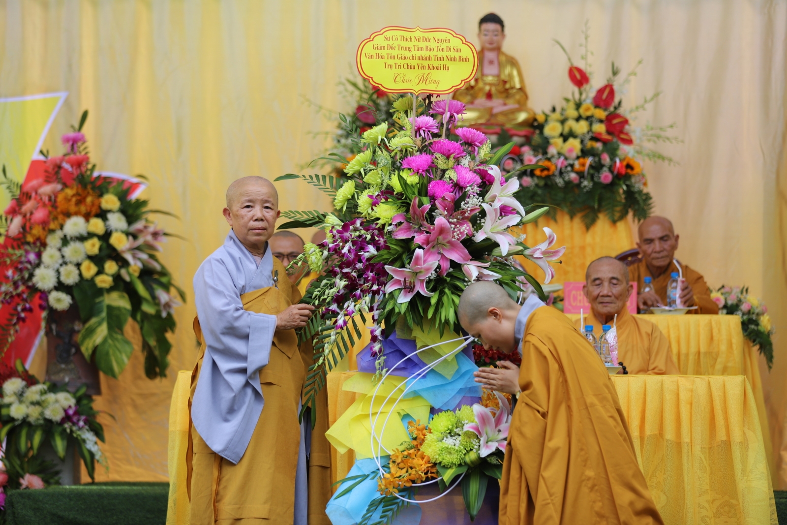 Tại buổi lễ, Ban Tổ chức đã đón nhận nhiều lẵng hoa chúc mừng và sự phát tâm chung tay góp sức đại trùng tu chùa Hải Sơn.