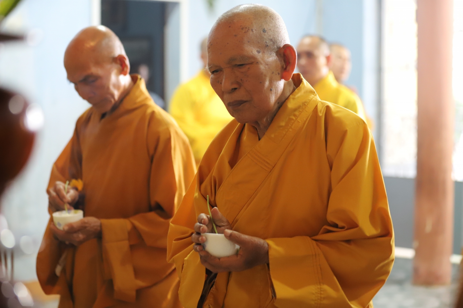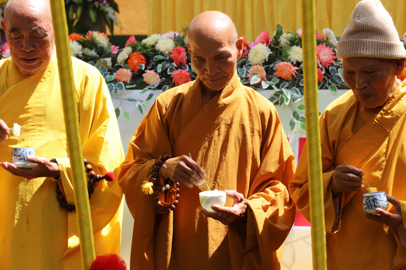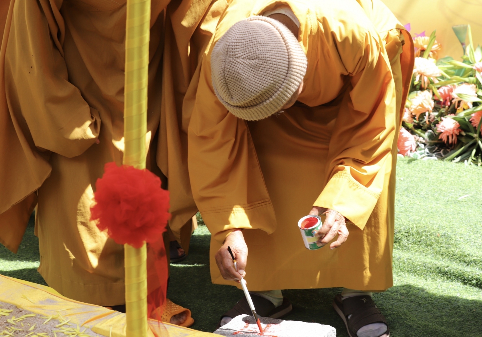 Sau lễ hành chánh, chư Tôn đức cử hành nghi thức sái tịnh, trì tụng kinh chú và chính thức thực hiện nghi thức động thổ, đặt viên đá đầu tiên trong không khí trang nghiêm.